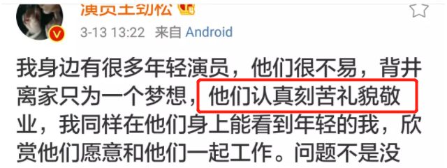 Nhiều người nói rằng Vương Kính Tùng chỉ nói về sự việc chứ không nói về người nào cả, chỉ đang nói về hiện tượng thôi, chứ không hề “đâm chọt” bất kỳ diễn viên trẻ nào.
