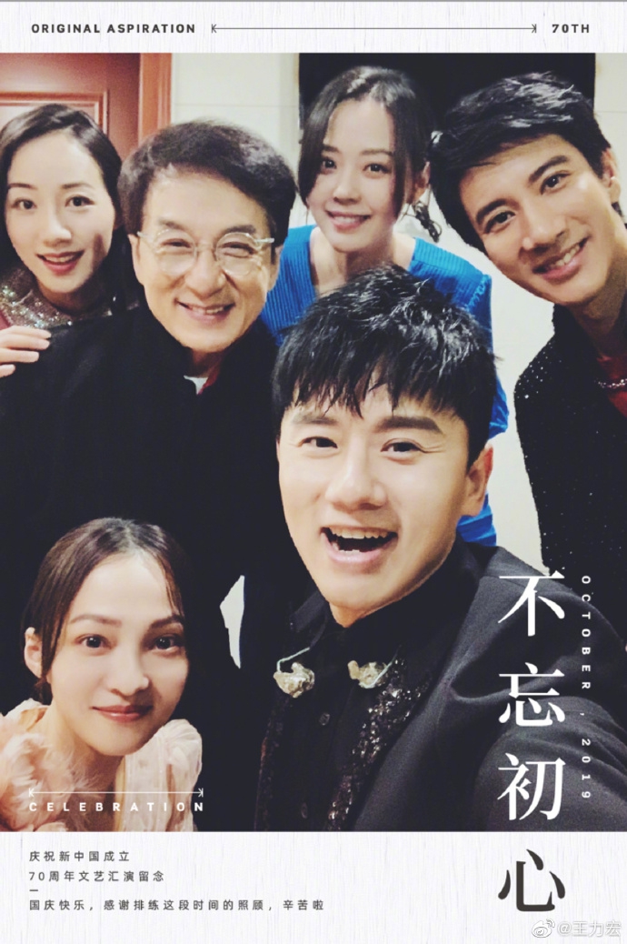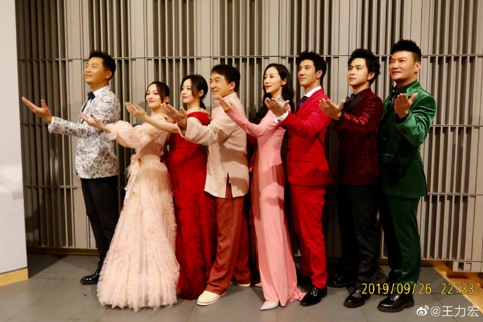 Trong hình, Vương Lực hoành mặc trang phục biểu diễn đứng cùng đàn anh Thành Long, Trương Kiệt, Trương Vận Hàm,… cùng nhau chụp tấm hình tập thể. Trương Lương Dĩnh với váy dài đỏ cùng lớp trang điểm tinh tế càng thêm xinh đẹp. Bên cạnh là Hàn Tuyết lựa chọn váy dài màu hồ nhạt rất nhẹ nhàng. Các nam tinh cũng không hề thua thiệt, Thành Long đại ca đứng ở C vị càng tạo thêm nét đặc biệt.