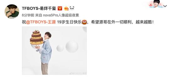 Có rất nhiều bạn bè tốt trong giới giải trí đã gửi lời chúc mừng sinh nhật cho Vương Nguyên: