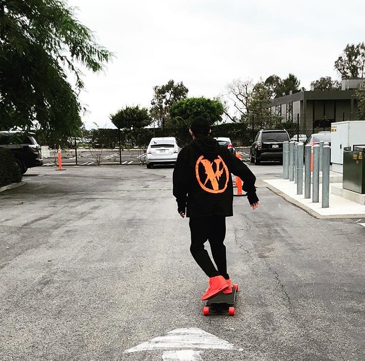 “Tiểu hoàng tử” lập tức thử chiếc ván trượt sau khi được trao tặng.