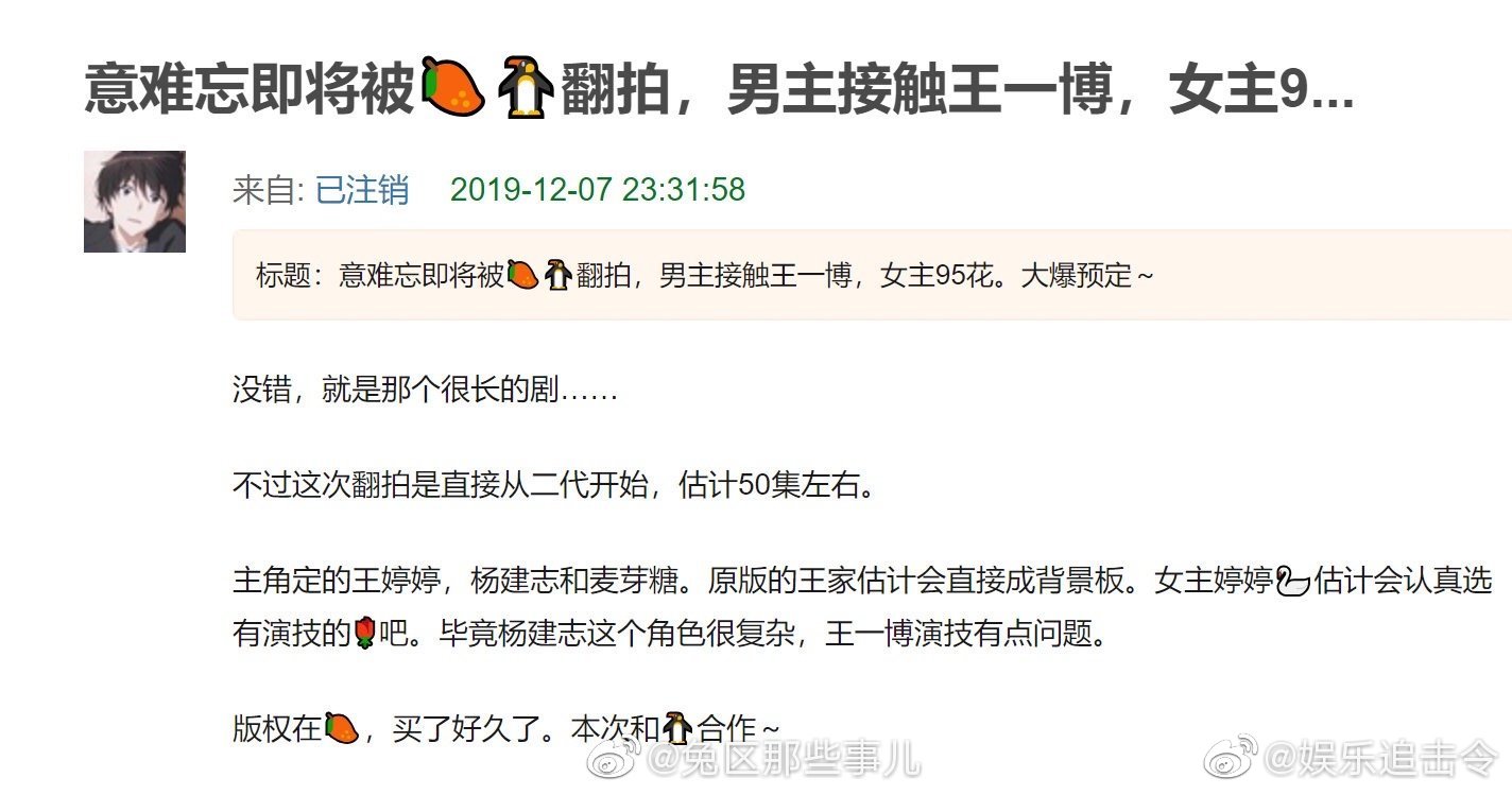 Mới đây, trên weibo có tin bộ phim Ý khó quên sẽ được remake lại và nam nữ chính đang tiếp xúc với Vương Nhất Bác và Dương Tử (phim sẽ lấy giai đoạn hai - đời sau) làm chủ để phát triển câu chuyện.