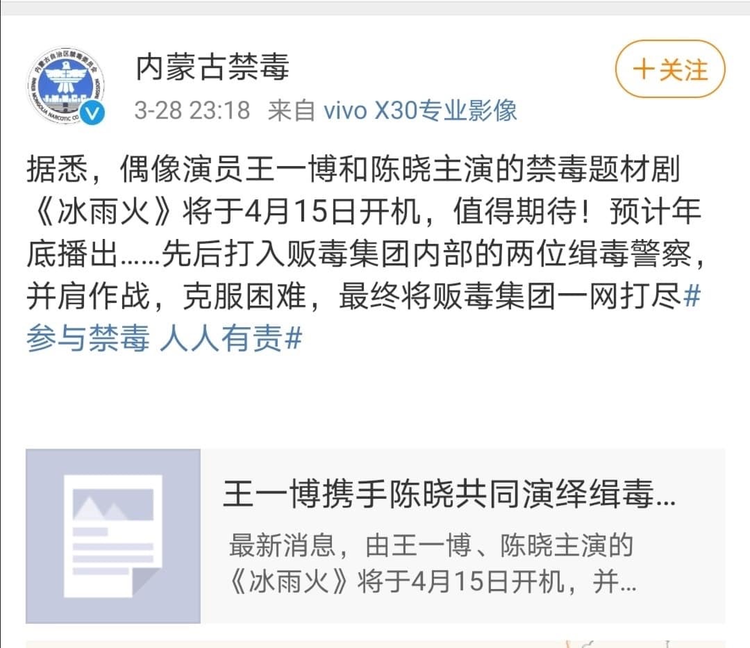 Mặc dù hiện tại vẫn đang ghi hình cho bộ phim truyền hình Hữu Phỉ hợp tác cùng với “Nữ hoàng rating” - Triệu Lệ Dĩnh. Tuy nhiên mới đây, người hâm mộ của Vương Nhất Bác lại vô cùng xôn xao trước thông tin anh chàng đã xác nhận sẽ tham gia vào 1 dự án phim truyền hình khác Băng Vũ Hoả, hợp tác cùng Trần Hiểu.