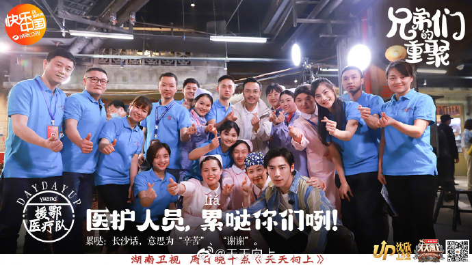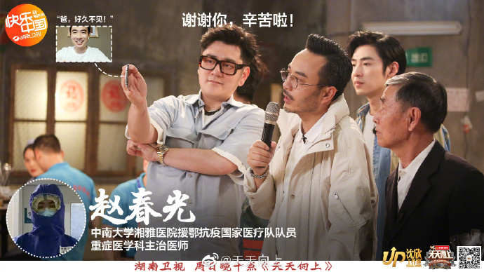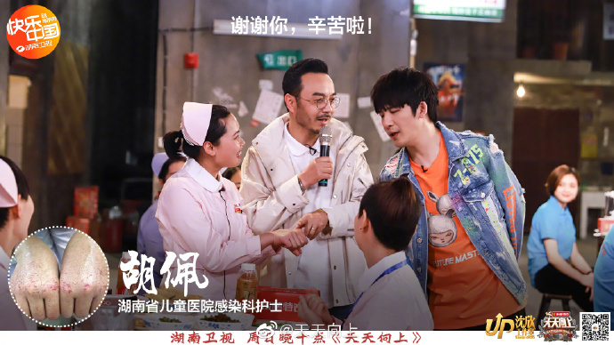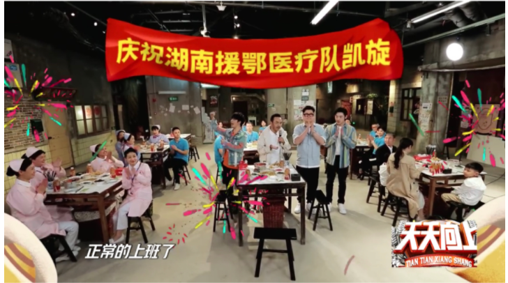 Chủ đề lần này của chương trình Thiên thiên hướng thượng chính là tổ chức một buổi tiệc cám ơn với đoàn đội y bác sĩ đã giúp đỡ cho Hồ Bắc. Những nhân vật y tế được mời đến hiện trường ngày hôm đó đều là những người đã hết hạn cách ly.