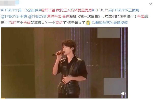 Gần đây, một tin tức mới liên quan đến Dịch Dương Thiên Tỉ được cư dân mạng đưa lên bảng hot-search, nội dung của bài viết đó là “Dịch Dương Thiên Tỉ: Ba người chúng tôi hội tụ chính là điểm sáng!“. Ngày 8 tháng 12, dân mạng đăng tải video phỏng vấn của Dịch Dương Thiên Tỉ, trong đó câu nói về nội dung này đã trở thành tâm điểm chú ý của dư luận.