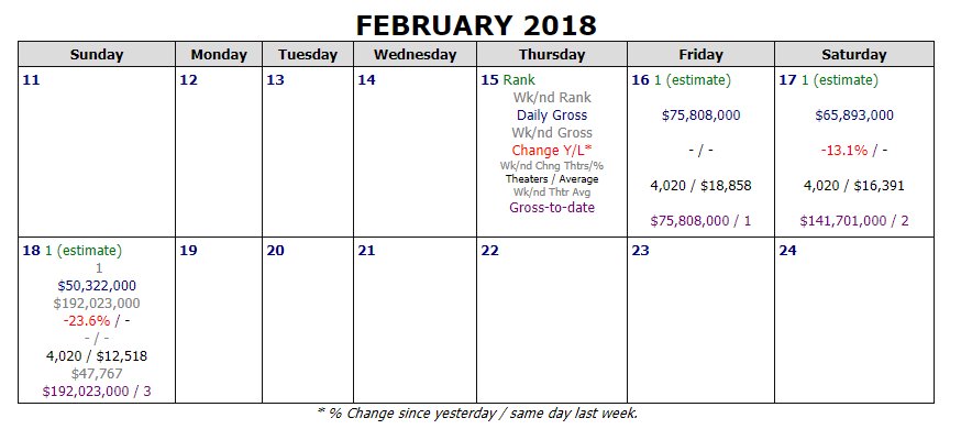 Doanh thu phòng vé Bắc Mỹ trong 3 ngày cuối tuần vừa qua (16-18/02/2018).