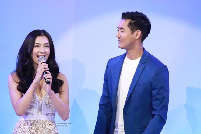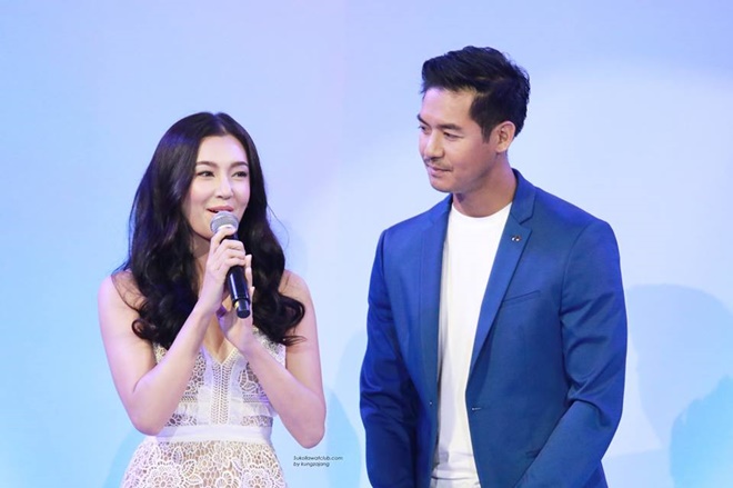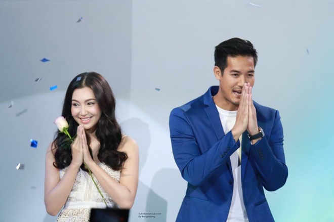 Trong sự kiện diễn ra vào tối 23/11, cặp đôi không ngại thể hiện tình cảm dành cho nhau. Đặc biệt là Weir Sukollawat, diện vest xanh đơn giản, anh vô cùng lịch thiệp và chăm sóc bạn gái rất chu đáo. Còn Bella, cô nàng lựa chọn đầm ren trắng vừa thanh lịch vừa có chút gì đó “bánh bèo” dễ thương.
