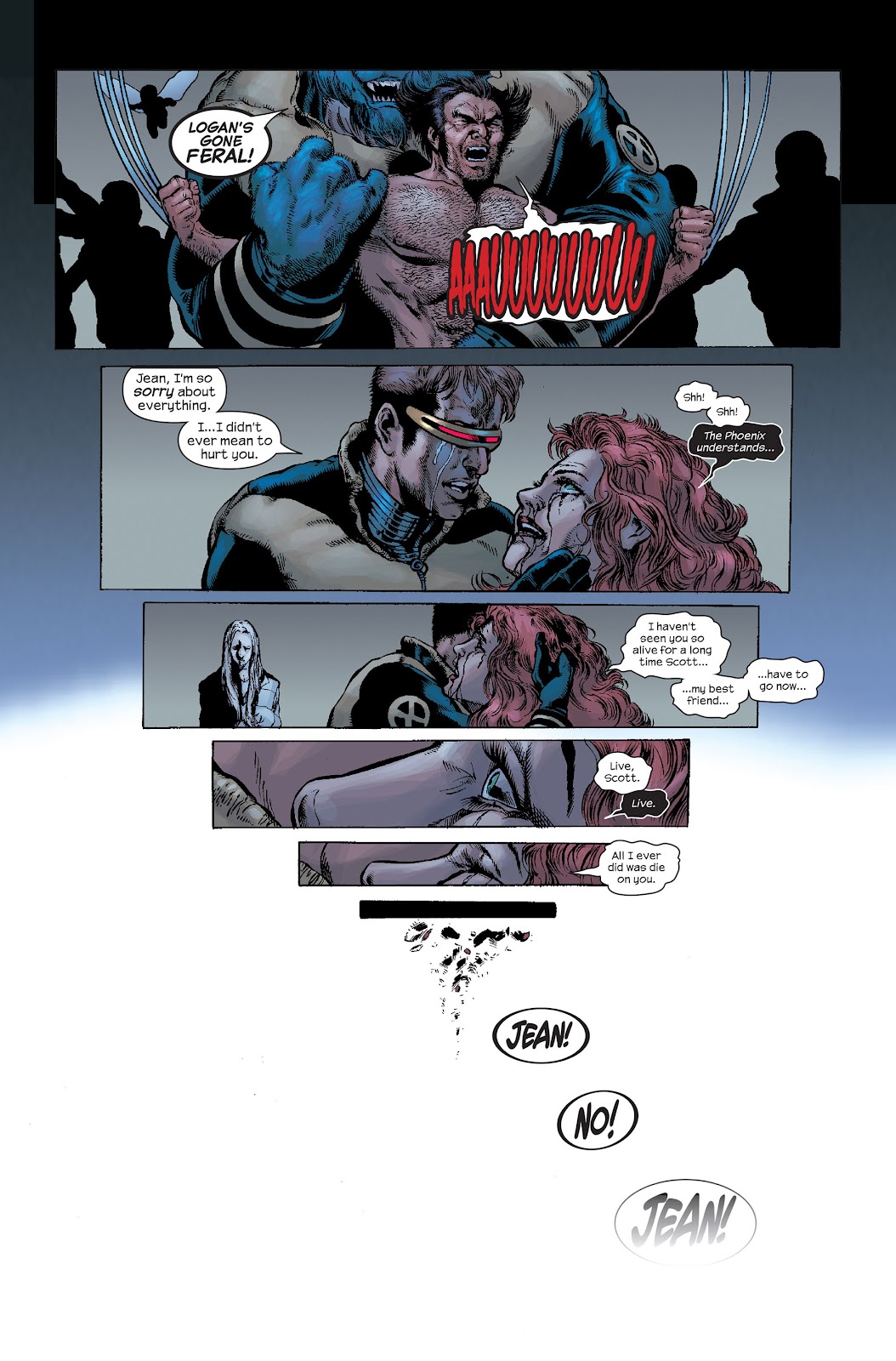 Jean Grey đã chết đi sống lại vô số lần và lần nào cũng để lại một nỗi đau vô cùng lớn dằng xé trong tâm trí Scott Summers, và lần này cũng không phải ngoại lệ. Trong New X-men #150, chỉ 2 issue sau khi Wolverine đâm chết Jean và lại được Phoenix hồi sinh lần nữa, Magneto lại gài bẫy Jean khi cô cùng đội X-men chống lại hắn khiến cô phải hứng chịu một cú đánh ở tầm hành tinh. Jean một lần nữa lại chết dưới sự chứng kiến của cả đội X-men và trong vòng tay của Scott.