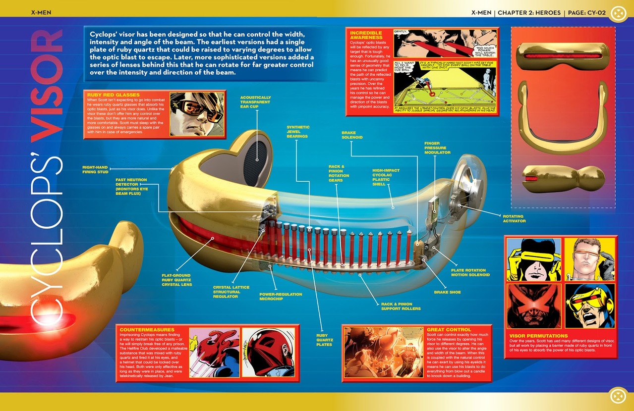 Đến The Official Handbook Of The Marvel Universe #3 ở năm 1986 thì sức mạnh của Cyke lại được sửa như ban đầu: hấp thụ năng lượng. Nhưng rồi sau hơn 20 năm ở The Official Handbook of The Marvel Universe X-Men 2004 thì lại một lần nữa cái vụ năng lực đến từ không gian khác đã trở lại, dù ít rắc rối hơn so với sự giải thích vào năm 1983, đồng thời cũng “kết hợp” luôn vụ cơ thể Cyclops có thể hấp thụ các dạng năng lượng. Để hỗ trợ cho việc “vũ trụ kỳ lạ” đó là có thật, trong ULTIMATES 2 #9, America Chavez đã từng “xé” ra cả một không gian chỉ chứa toàn “lực chuyển động để bắn chết một con Chitauri,” đoán xem nó có màu gì nào? Yup, màu đỏ ruby hệt như Optic Blast của Cyclops.
