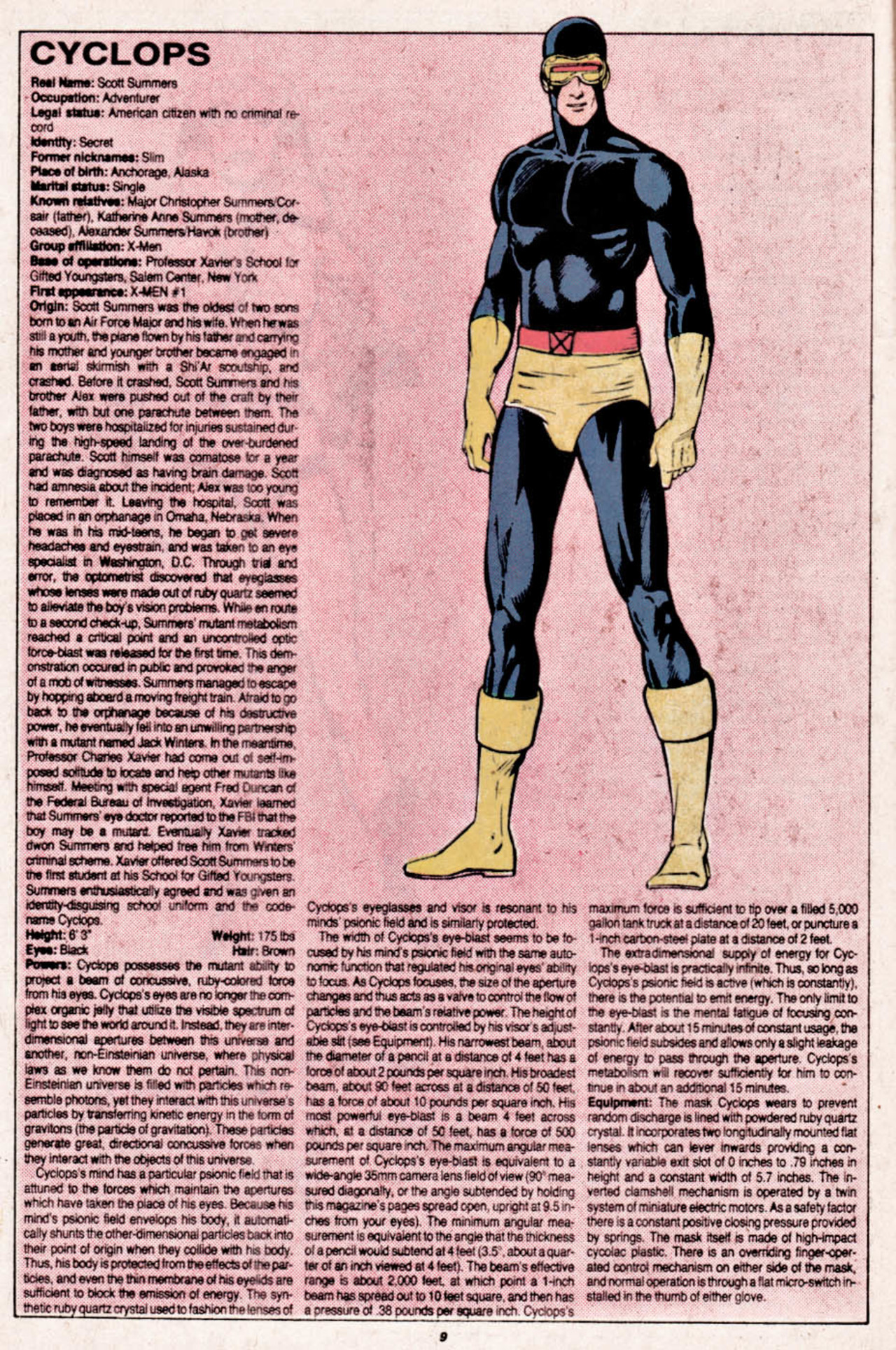 Thông tin của Cyke trong The Official Handbook Of The Marvel Universe (1983)
