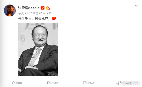 Trương Hinh Dư: “Kim Dung lão sư kính yêu, lên đường bình an”.