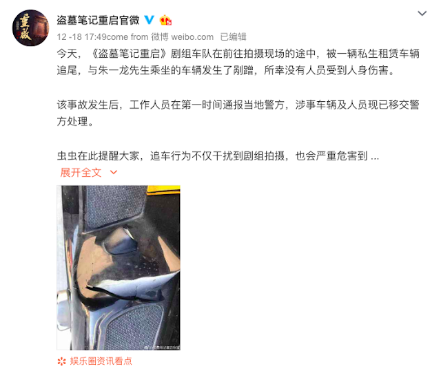 Tân Đạo mộ bút kí (The Lost Tomb Reboot 笔记 重启 ) hiện đang quay phim với Chu Nhất Long là diễn viên chính đảm nhận vai Ngô Tà. Đã đạt đến một tầm cao mới về sự nổi tiếng sau khi đóng vai chính trong Trấn Hồn, đã có những trường hợp trong đó Chu Nhất Long bị bám đuôi bởi những người hâm mộ quá nhiệt tình, và có vẻ như họ đã lại tấn công xe của anh ấy.