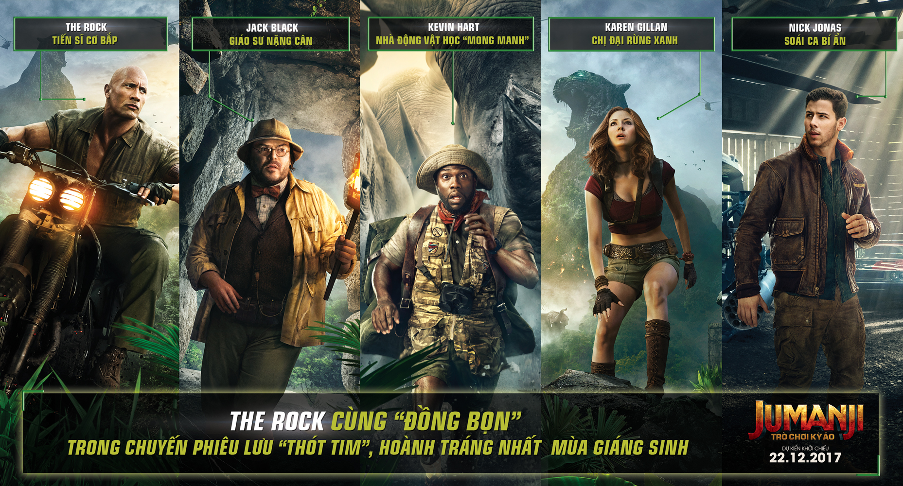 Với một dàn diễn viên đình đám như Dwayne Johnson (nghệ danh The Rock), Karen Gillan (bóng hồng Guardians of the Galaxy), danh hài Jack Black (người lồng tiếng cho gấu Po trong Kungfu Panda), nghệ sĩ hài có catse cao nhất thế giới Kevin Hart, Jumanji hứa hẹn sẽ đưa khán giả vào một thế giới kỳ ảo đầy mê hoặc, với những pha hành động nghẹt thở xen lẫn các tình tiết dở khóc dở cười.