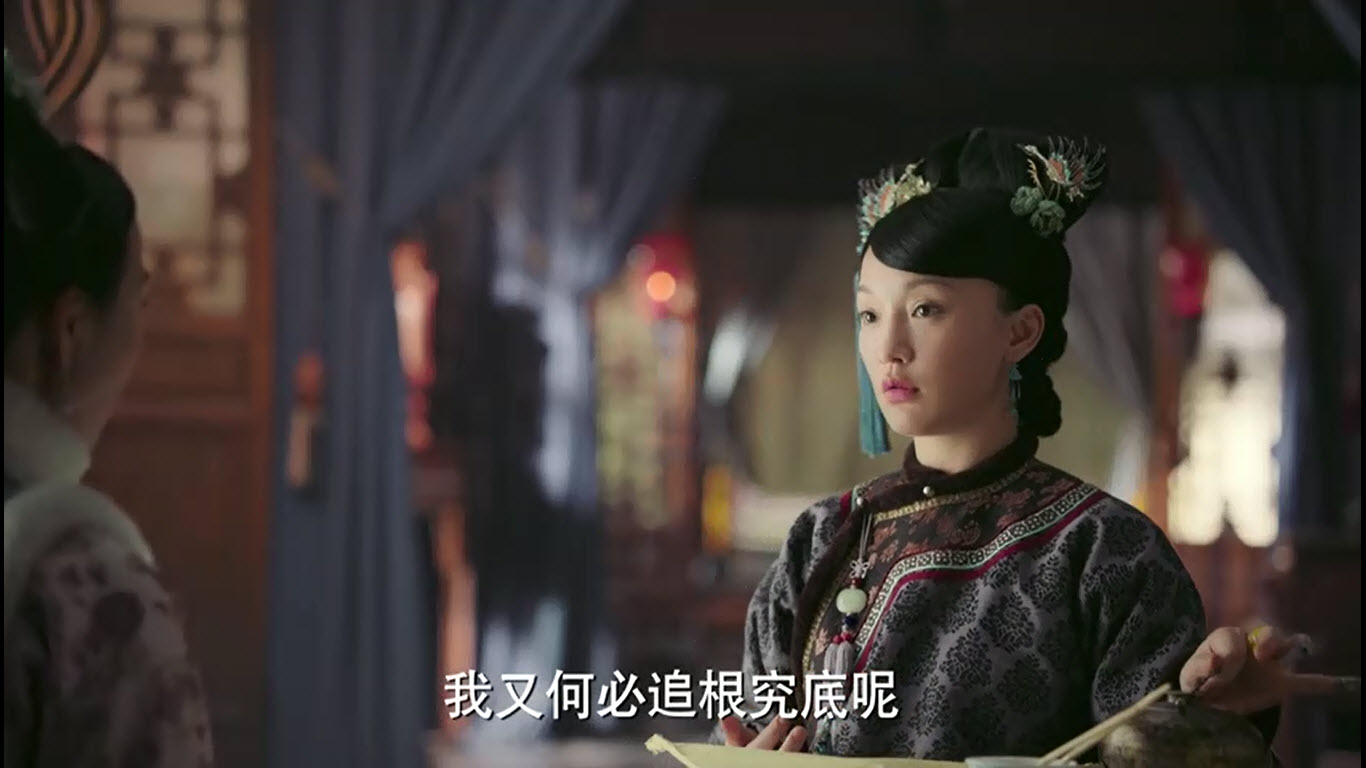 Như Ý (Châu Tấn) được lệnh dìu Mai Đáp Ứng về phòng, về đến phòng Bạch Thi Cơ khoe khoang về việc bản thân được Hoàng thượng ân sủng, thế nhưng Như Ý khi nghe xong không hề bực tức, trái lại còn nhịn không được mà cười. Bạch Thi Cơ thấy thế liền cho rằng Như Ý xem thường cô cho nên cố tình khiêu khích, gợi lại nỗi đau về việc cô mẫu của Như Ý năm trước, Như Ý nghe được liền lập tức trầm lặng.