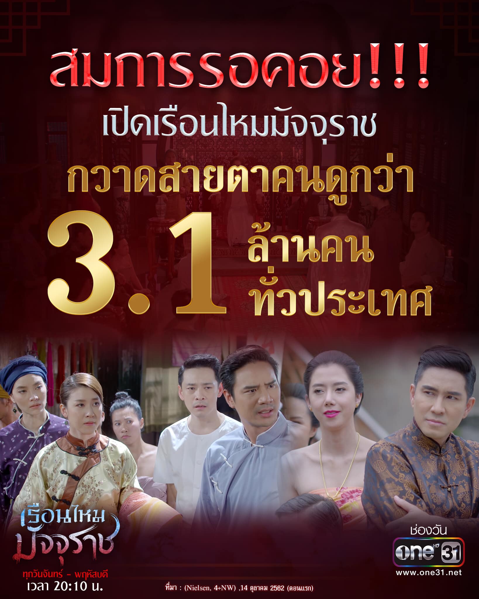 Sau đây là xếp hạng người xem phim truyền hình Thái Lan trên toàn quốc được đo bởi Nielsen Thái Lan vào ngày 14 tháng 10 năm 2019.