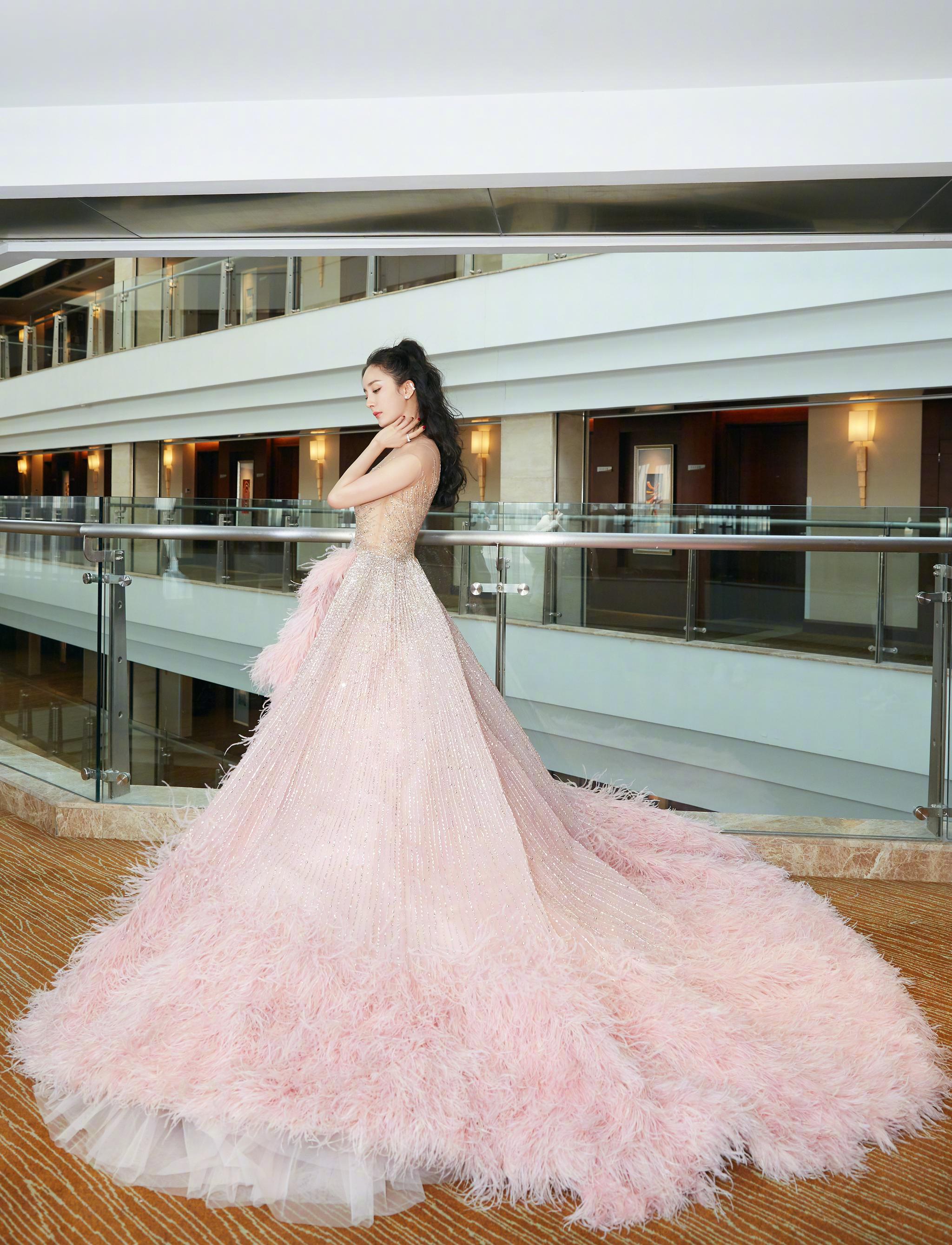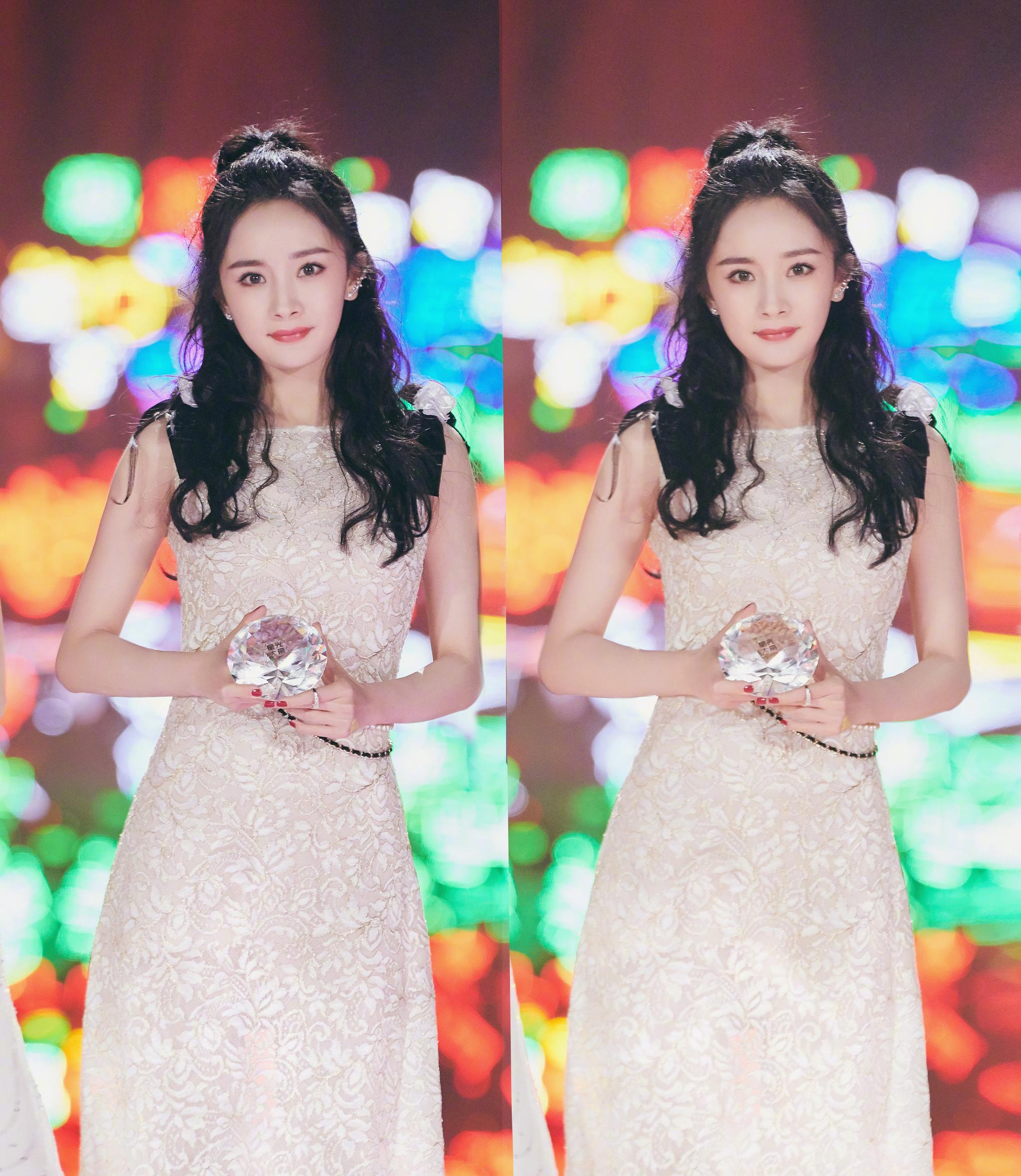 Dương Mịch được biết đến là một trong những mỹ nhân đẹp nhất của làng giải trí Hoa Ngữ. Tại buổi lễ lần này, Dương Mịch mặc một chiếc váy lông ngỗng màu hồng nhạt, nữ diễn viên trông vô cùng ngọt ngào và thanh lịch. Cộng thêm cách trang điểm tinh tế cùng kiểu tóc đuôi ngựa khiến cô càng trẻ trung năng động hơn. Chiếc váy dài bó sát ôm gọn thân hình giúp Dương Mịch khoe vóc dáng tối ưu, Dương Mịch của ngày hôm đó thậm chí còn đẹp hơn so với Địch Lệ Nhiệt Ba ngồi cạnh.