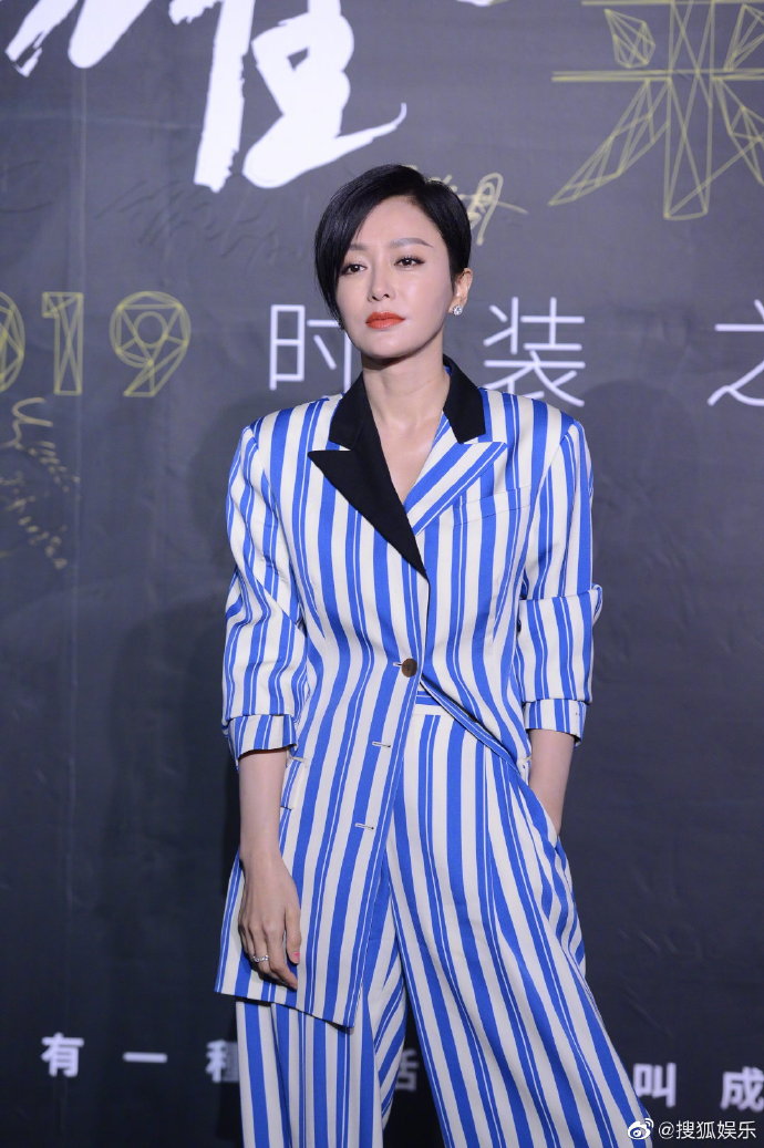 Tần Lam xuất hiện tại đêm thời trang này với bộ vest nữ có họa tiết xanh xen trắng phối hợp với mái tóc ngắn và cách trang điểm tinh tế trông cực “điển trai”. Không nghĩ đến một nữ diễn viên từng đóng vai Hoàng hậu ôn hòa, một nữ vương xuất hiện đầy thần thái lại chọn cho mình một tạo hình mới lạ vào ngày hôm nay.