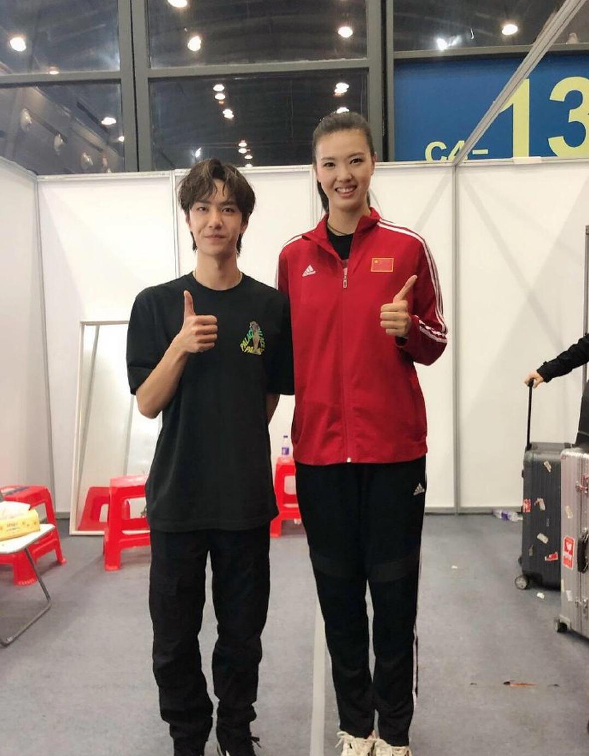 Vương Nhất Bác đã chụp ảnh cùng vận động viên nữ bóng chuyền Trương Thường Ninh ở hậu trường. Trong ảnh, anh chàng Nhất Bác cao 1m8 bỗng chốc như hóa thành người có chiều cao “khiêm tốn”. Khi đứng cùng Trương Thường Ninh, đâu đó phảng phất hình ảnh hay trạng thái của một chú chim nhỏ đang muốn nhờ cậy người khác hay đợi cơ hội gì đó.