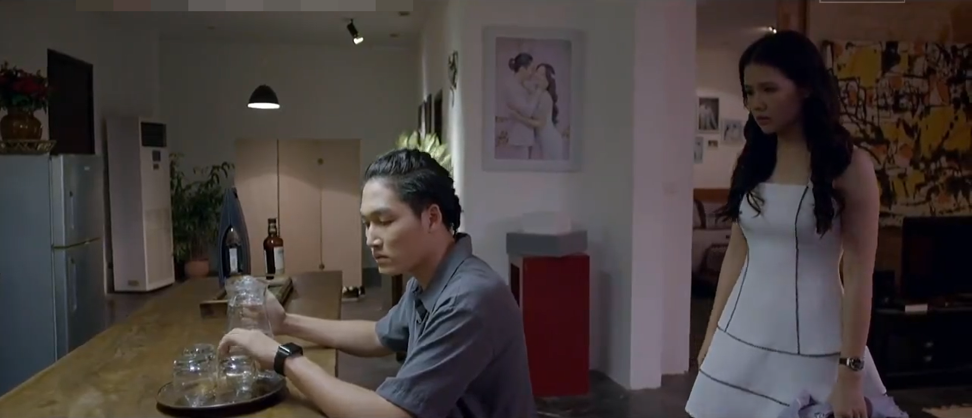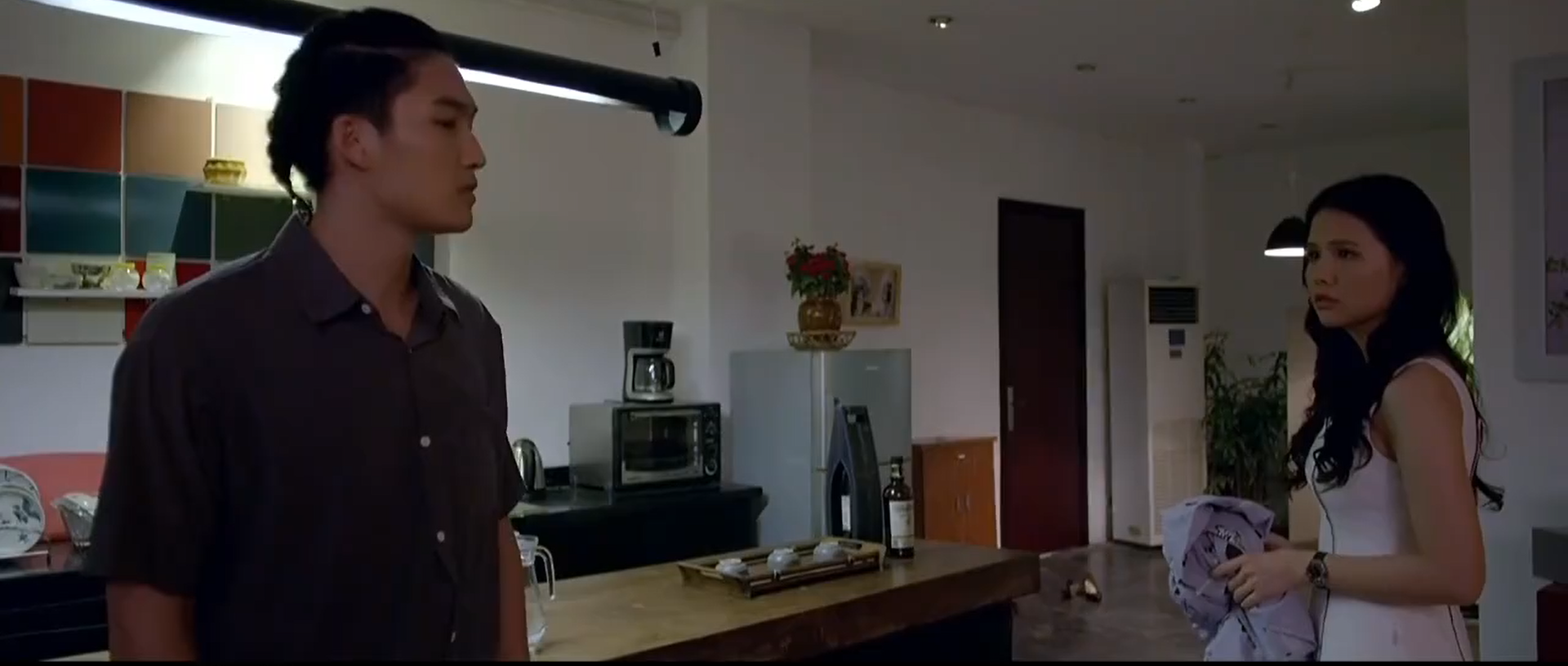 Trong tập 12 bộ phim Yêu thì ghét thôi, Du (Đình Tú đóng) dở thói côn đồ, hành hung khách VIP của khách sạn - Nơi anh vừa mới được nhận vào làm.