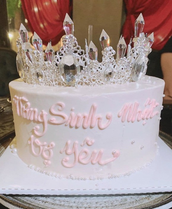 Dù không đăng ảnh chụp cùng ông xã nhưng ai cũng đoán được rằng tiệc sinh nhật lần này do chính tay chồng Bảo Thy tổ chức. Anh còn dành tặng nữ ca sĩ một chiếc bánh kem màu hồng với dòng chữ “Mừng sinh nhật vợ yêu”. Điểm đặc biệt nhất trên chiếc bánh kem chính là chiếc vương miện lấp lánh như thể muốn ví cô là “nữ hoàng” của đời mình.