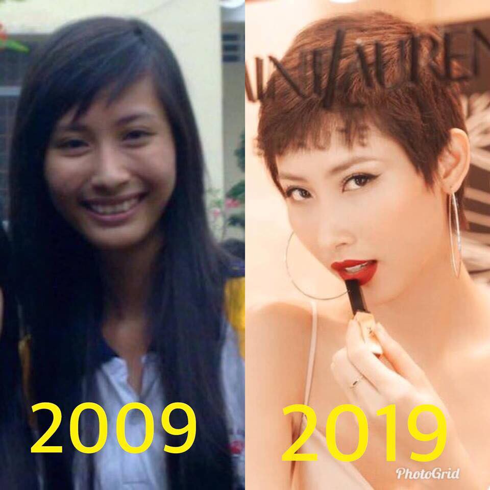 Không bỏ qua trào lưu này, các hotgirl Việt cũng nhanh tay đăng tải những bức ảnh 10 năm về trước và hiện tại khiến những fans hâm mộ vô cùng thích thú.