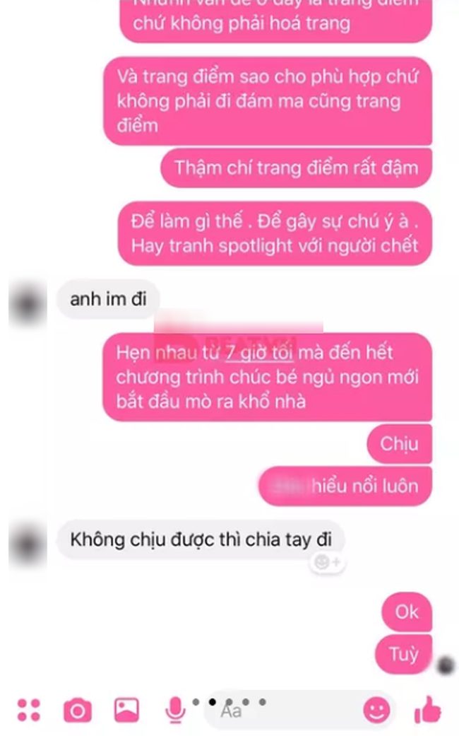 Kèm theo bài đăng này là ảnh chụp màn hình tin nhắn giữa hai người. Nhìn cũng đủ để hiểu cả hai đều có lí lẽ của riêng mình và quyết định chia tay nhau.