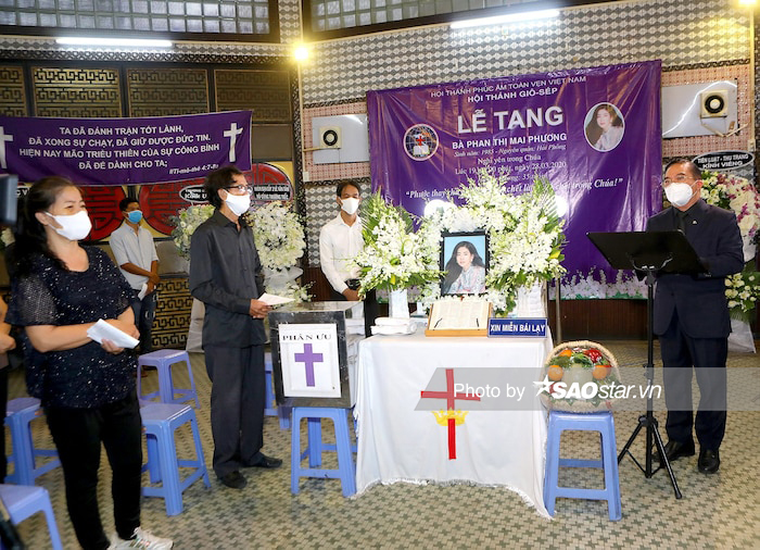 Có mặt tại đám tang, MC Ốc Thanh Vân đeo khẩu trang, găng tay và mắt kính để phòng dịch COVID-19. Dẫu vậy, cô vẫn để lộ đôi mắt buồn bã, thất thần trước sự ra đi của người em thân thiết. Trên trang cá nhân, Ốc Thanh Vân liên tục đăng tải những dòng trạng thái nhớ lại kỉ niệm về Mai Phương khiến nhiều người không kìm được nước mắt.
