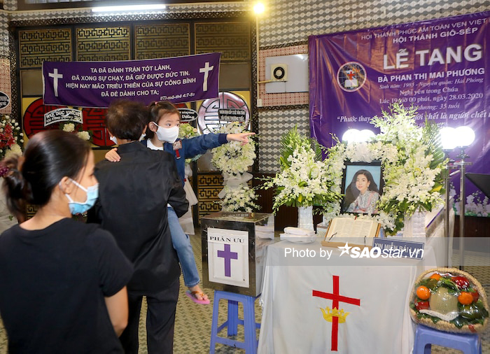 Cũng trong chiều 29/3, con gái Mai Phương đã được người thân đưa đến lễ tang để viếng mẹ. Hình ảnh bé Lavie buồn bã bước vào đám tang và được người thân nữ diễn viên bồng lên để nhìn thi hài mẹ khiến không ít dân mạng xúc động.
