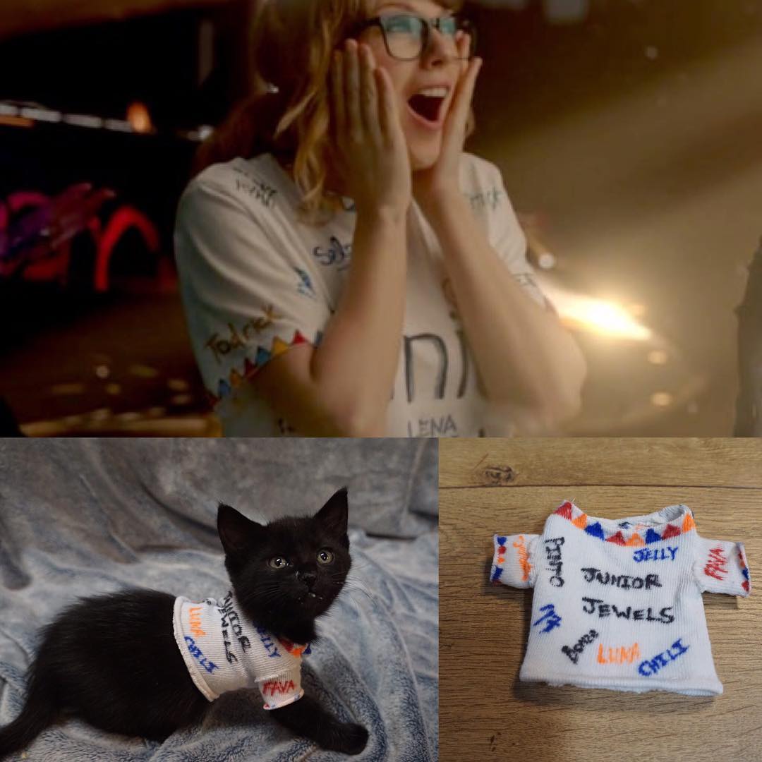 Hình tượng cô nữ sinh trong chiếc áo gây sóng gió một thời của Taylor nay cũng đã được cosplay hoàn hảo bởi em mèo Chili .