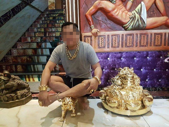 Tuy nhiên, rất nhanh chóng, cư dân mạng cũng tìm ra danh tính vị đại gia này. Theo đó, người đàn ông xuất hiện với những dây vàng kích cỡ lớn ấy là anh T.N.Phúc, năm nay 36 tuổi, hiện là chủ một quán karaoke khá nổi tiếng ở quận 12, TP.HCM. Đặc biệt, số vàng người đàn ông này đeo lên người đều là vàng thật, nặng khoảng 8kg.