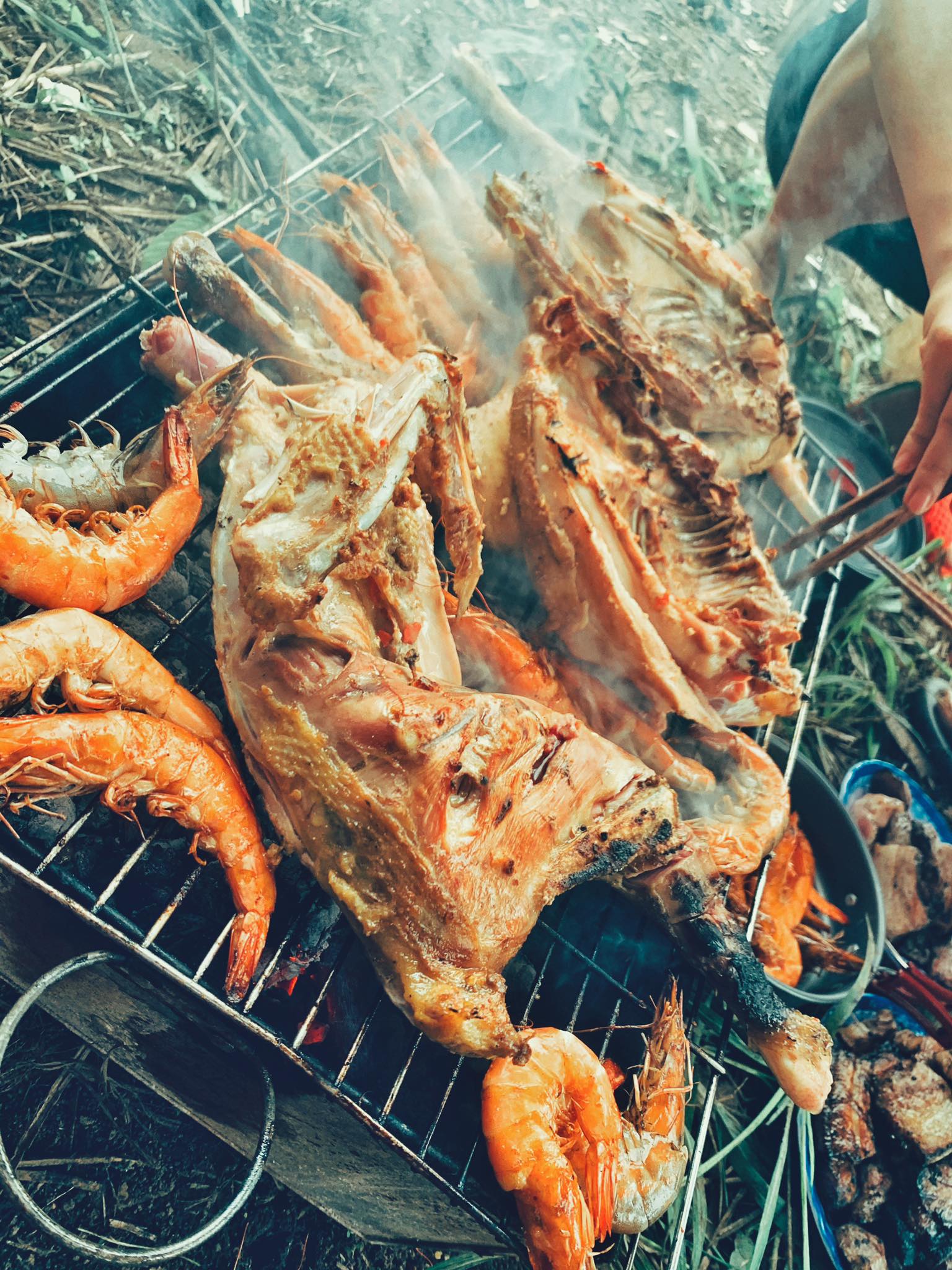 Do buổi chiều trời mưa nên nữ diễn viên khá tiếc nuối vì không được ngắm cảnh hoàng hôn đẹp tuyệt ở nơi này. Tuy nhiên, tối đến thì rất vui khi mọi người cùng đốt lửa nướng gà, nướng khoai, ngắm view rừng và hít thở không khí thiên nhiên, mọi thứ cứ thể trôi qua trong tiếng cười và sự an yên, những khoảnh khắc khó có thể tìm thấy ở Sài Gòn nhộn nhịp. Mỹ nhân 9X hào hứng chia sẻ buổi tối ở Tà Giang thật sự là trải nghiệm đáng nhớ, không chỉ được uống rượu bản địa, thưởng thức ẩm thực của đồng bào nơi đây mà còn có nhiều hoạt động đàn hát, chia sẻ hàn huyên, thú vị không nói nên lời.