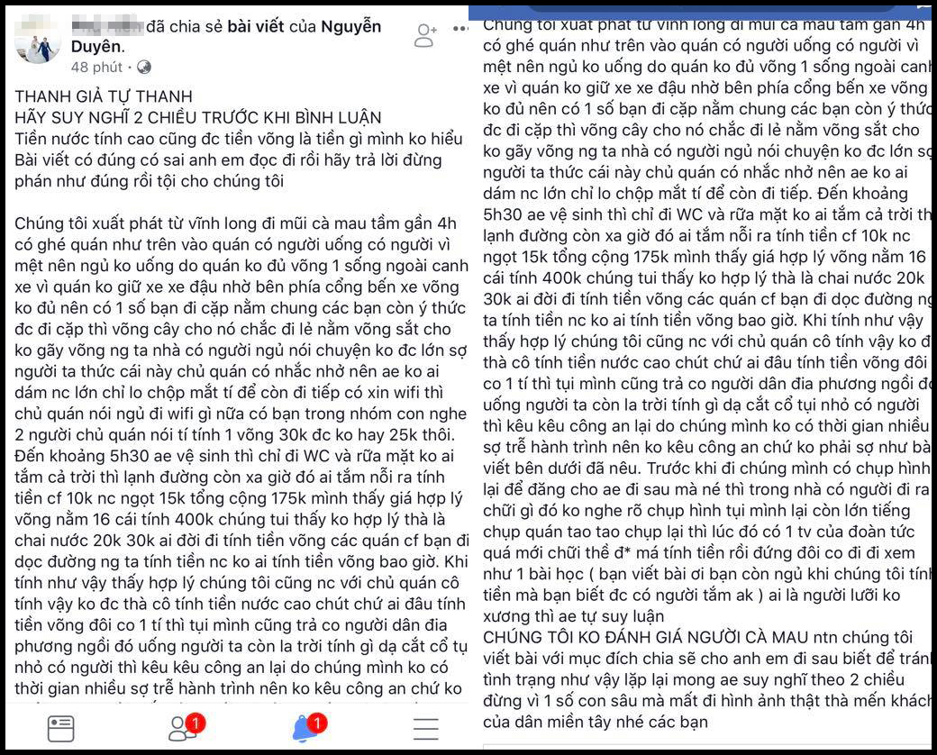 Liền sau đó, một tài khoản có tên Nguyễn Duyên đã đăng tải một bài viết rất dài nhằm ”Minh oan cho người Cà Mau”. Tài khoản này cho biết: