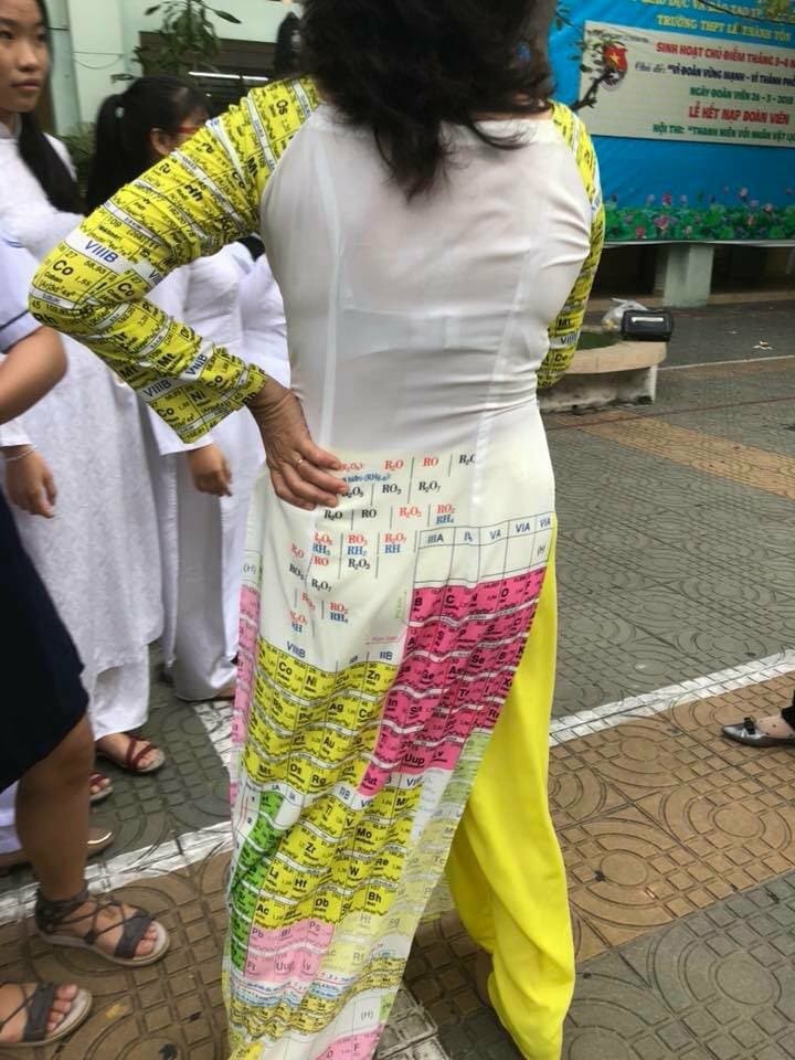 Hình ảnh cô giáo mặc áo dài in bảng tuần hoàn hóa hóa khiến cư dân mạng thích thú.