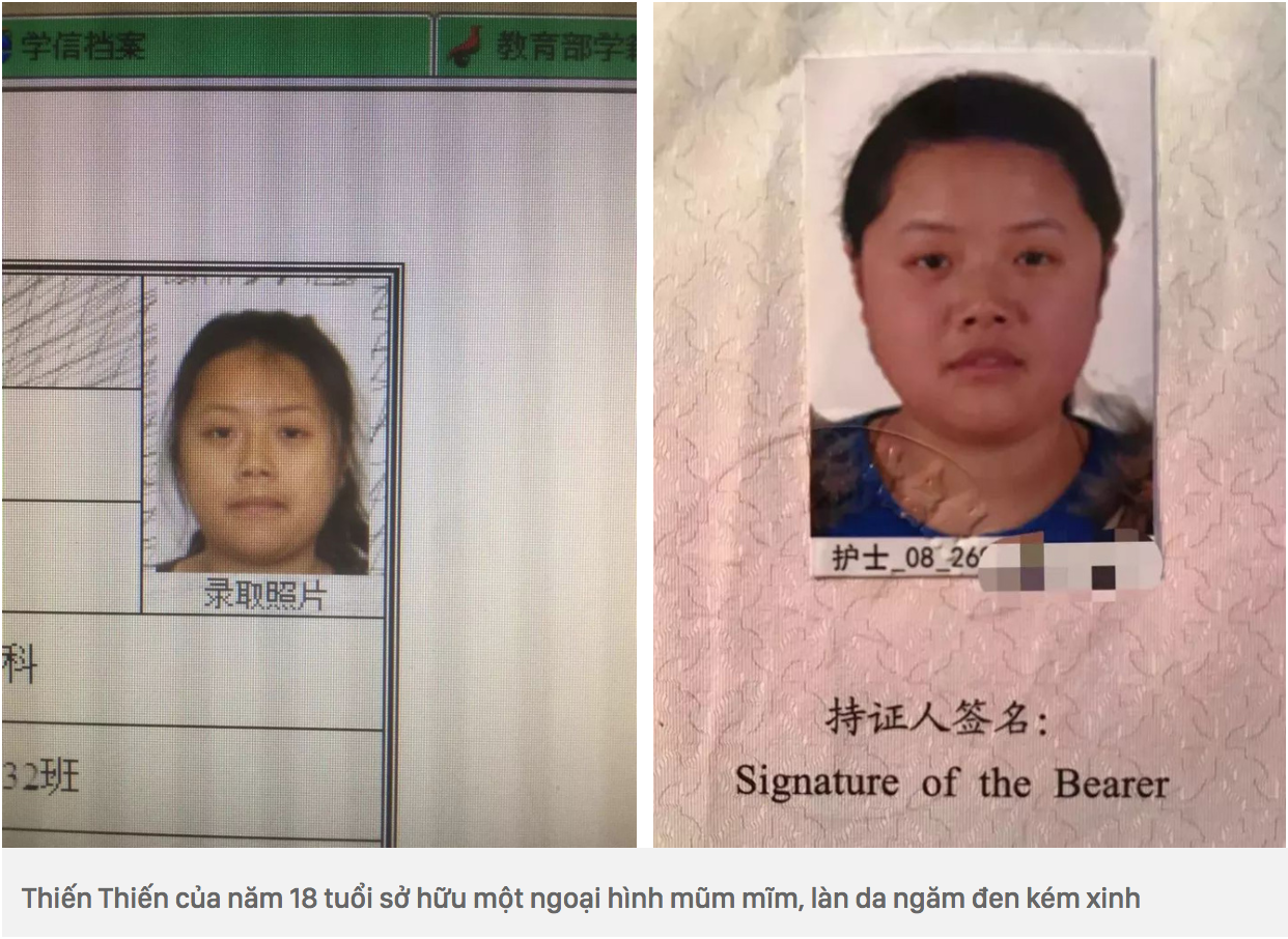 Khi ấy, bắp tay và bắp chân của cô đều rất thô, hơn nữa vì không biết chăm sóc da nên da của Thiến Thiến luôn trong tình trạng ngăm ngăm, nhiều mụn. Mỗi khi cười, đôi mắt dù rất to tròn của Thiến Thiến cũng bị lớp mỡ thừa che còn bé tí.