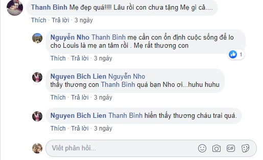 Ngay sau đó, nam diễn viên cũng chia sẻ lại bài đăng của mẹ Ngọc Lan. Phía dưới phần bình luận, Thanh Bình cũng bình luận rằng: “Cảm ơn mẹ đã tin và bên con”.