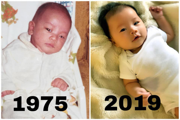 Hình ảnh quý tử Landon Vũ Đông Quân hồi 3 tháng tuổi, được Victor Vũ chia sẻ trên trang cá nhân và so sánh với chân dung anh lúc nhỏ. Dễ dàng nhận ra, hai cha con giống nhau như hai giọt nước, nhiều người còn đùa vui rằng hai bức ảnh trên như cùng một đứa trẻ chỉ khác biệt về cột mốc thời gian.