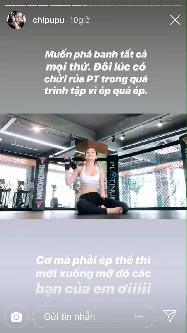 Nhìn cường độ tập luyện mới thấy để có vòng eo con kiến quả thật không hề dễ. Đôi lúc cô nàng còn quá mệt nhưng vẫn cố gắng để đạt được mục tiêu. Quả thực là rất vất vả nhưng bù lại cô bạn Chi Pu lại sở hữu vóc dáng mà bao người phải ghen tỵ.
