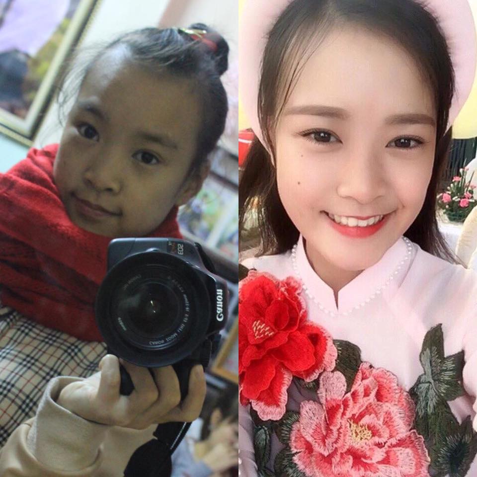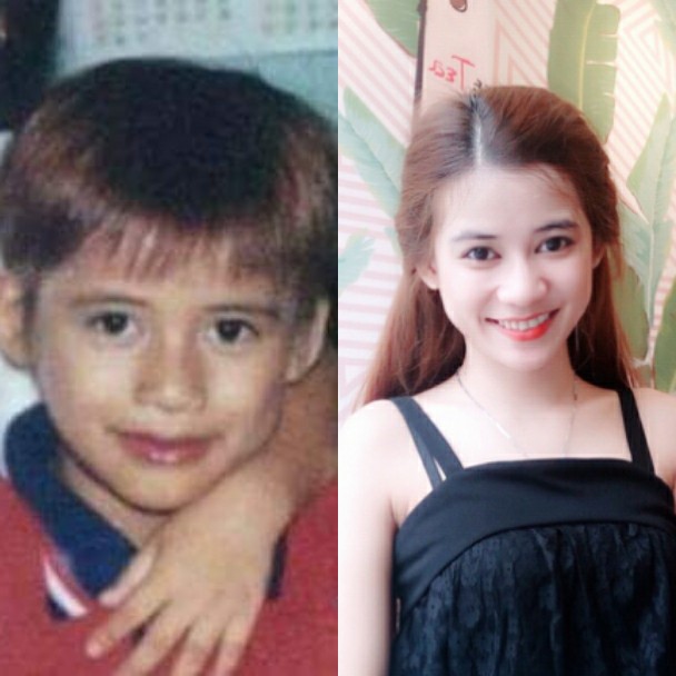 Cả hai người trong bức ảnh trên đều chính là Nguyễn Phương Anh, một 99er đang theo học khoa thanh nhạc tại trường Cao đẳng nghệ thuật Hà Nội. Phương Anh thuở bé có nước da ngăm, gầy gò và thoạt nhìn cứ như một cậu con trai nếu không nhờ hai chỏm tóc đuôi gà hai bên. Nhưng cơn lốc mang tên “dậy thì” đã biến cô bé ngoại hình có phần tomboy này thành một thiếu nữ “vạn người mê” siêu nổi bật với thân hình chuẩn mực quyến rũ đáng mơ ước.