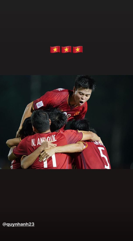 Tiếp theo Đình Trọng là story của Duy Mạnh anh đăng ảnh mừng chiến thắng đội tuyển và không quên tag tên cô bạn gái xinh đẹp.