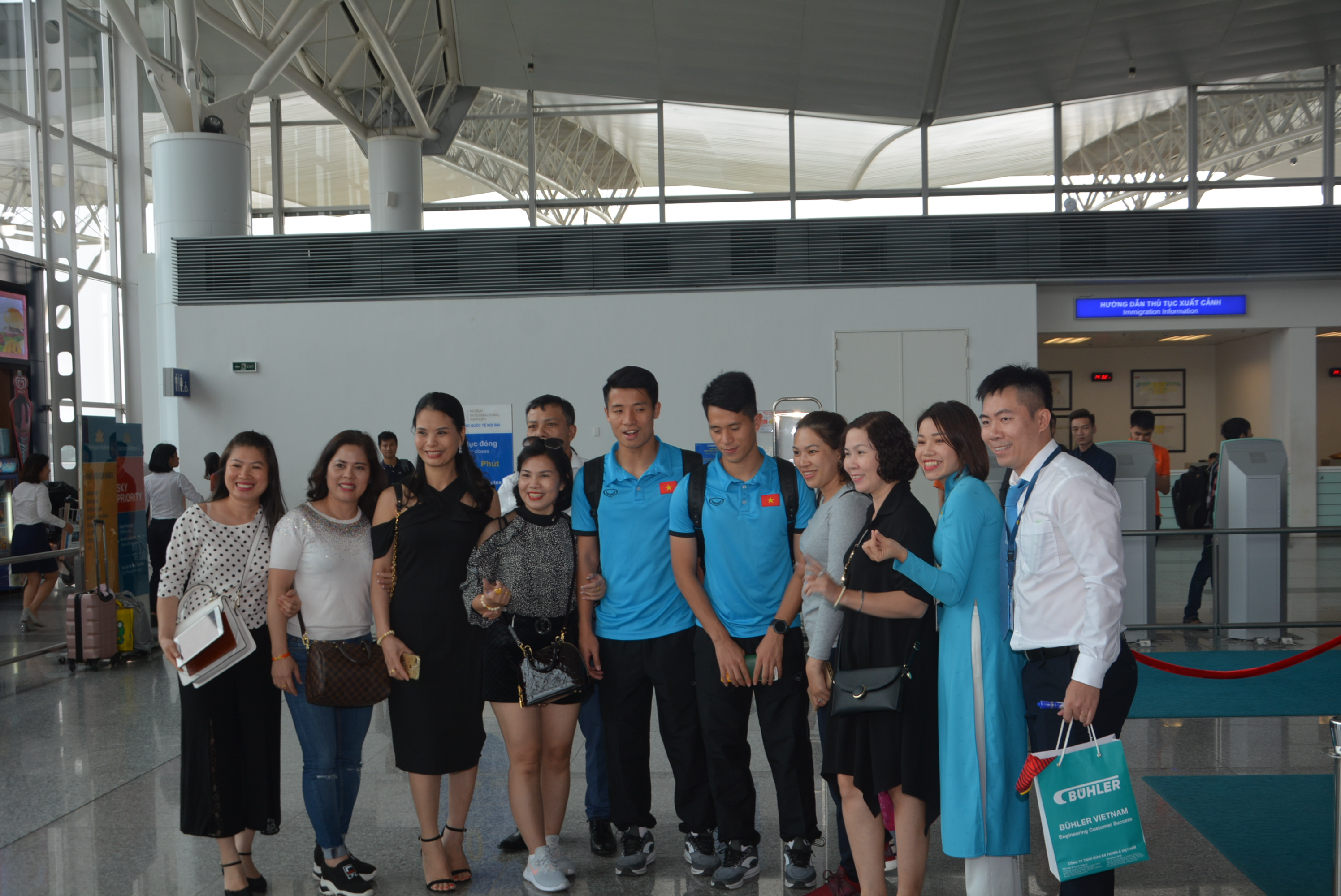 Trước giờ bay, các cầu thủ giao lưu chụp hình cùng người hâm mộ
