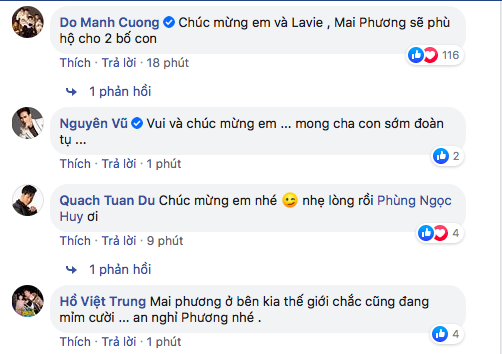 Thông tin Phùng Ngọc Huy chính thức giành được quyền nuôi bé Lavie đã nhận được nhiều sự ủng hộ và chung vui từ đông đảo khán giả lẫn nghệ sĩ Việt. Hi vọng nam ca sĩ sẽ làm tốt vai trò và trách nhiệm người cha để mang đến cho con gái cuộc sống mới tốt đẹp và hạnh phúc, như một sự bù đắp thương tổn cho Lavie sau sự ra đi của diễn viên Mai Phương.