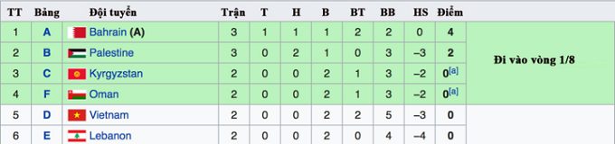 Thành tích các đội cạnh tranh xuất đi tiếp vòng 1/8.
