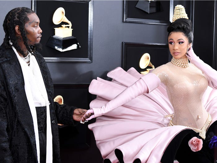 Cardi B và Offset bí mật kết hôn vào năm 2017. Tuy mối quan hệ dính rất nhiều lùm xùm, hai người vẫn rất yêu thương nhau, không ngại thể hiện tình cảm kể cả trên thảm đỏ. Tại Grammy 2019, Offset đã đứng cách xa một chút để Cardi B tạo dáng nhưng vẫn không rời mắt khỏi cô.