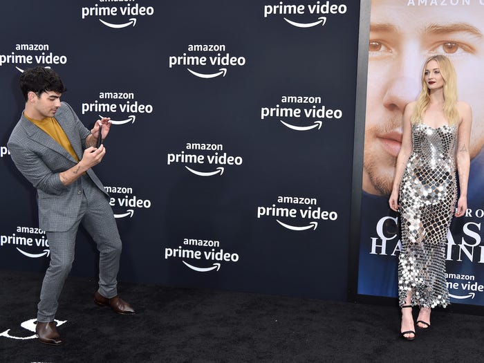 Cặp vợ chồng trẻ Joe Jonas và Sophie Turner hỗ trợ nhau không chỉ trong các MV ca nhạc của Jonas Brothers mà còn trên các sự kiện thảm đỏ. Joe cũng là một trong những ông chồng không ngại đứng cánh gà để chụp ảnh cho vợ tại sự kiện Amazon Prime Video vào năm 2019.