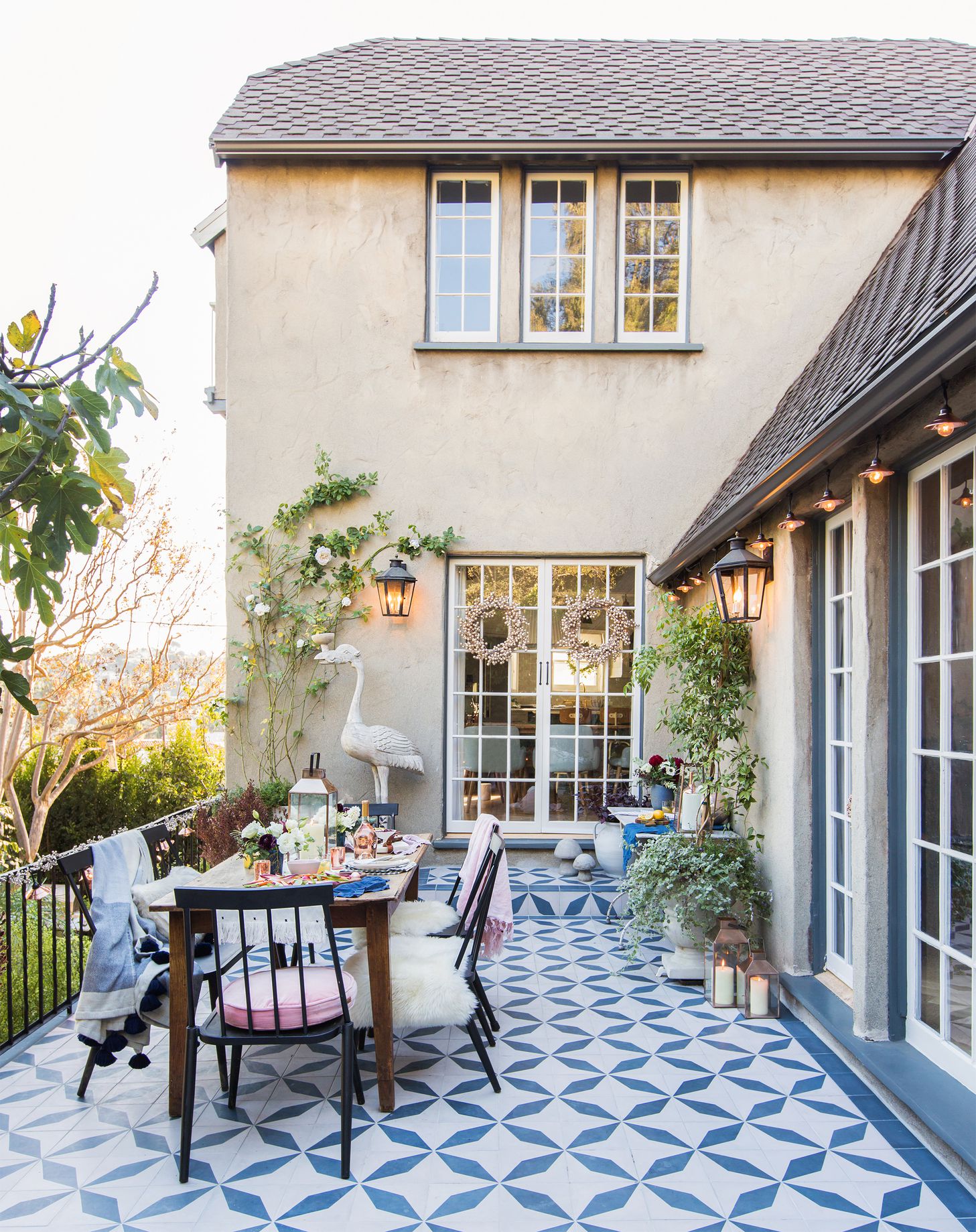 Nếu không có không gian rộng và muốn sự sạch sẽ, tách biệt thì đơn giản với khoảng sân sau được lát bằng gạch sáng màu cùng bộ bàn ghế đơn giản được điểm xuyến với những chậu cây xung quanh.