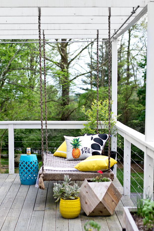 Khoảng không gian với chiếc ghế được treo đầy ấn tượng. Bạn có cảm giác như mình đang ngồi trên một chiếc boong tàu nào đó cho phút nghỉ ngơi của mình.