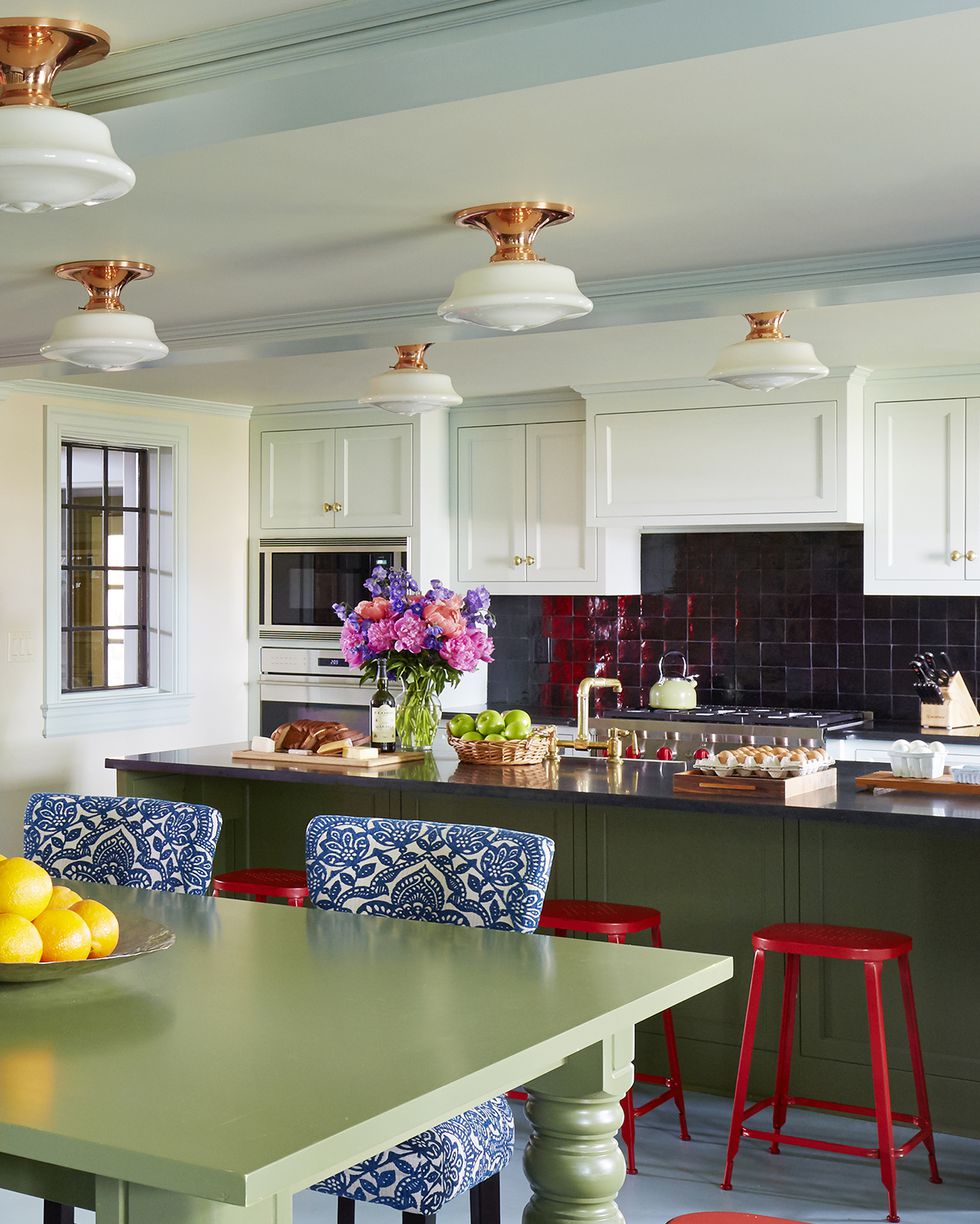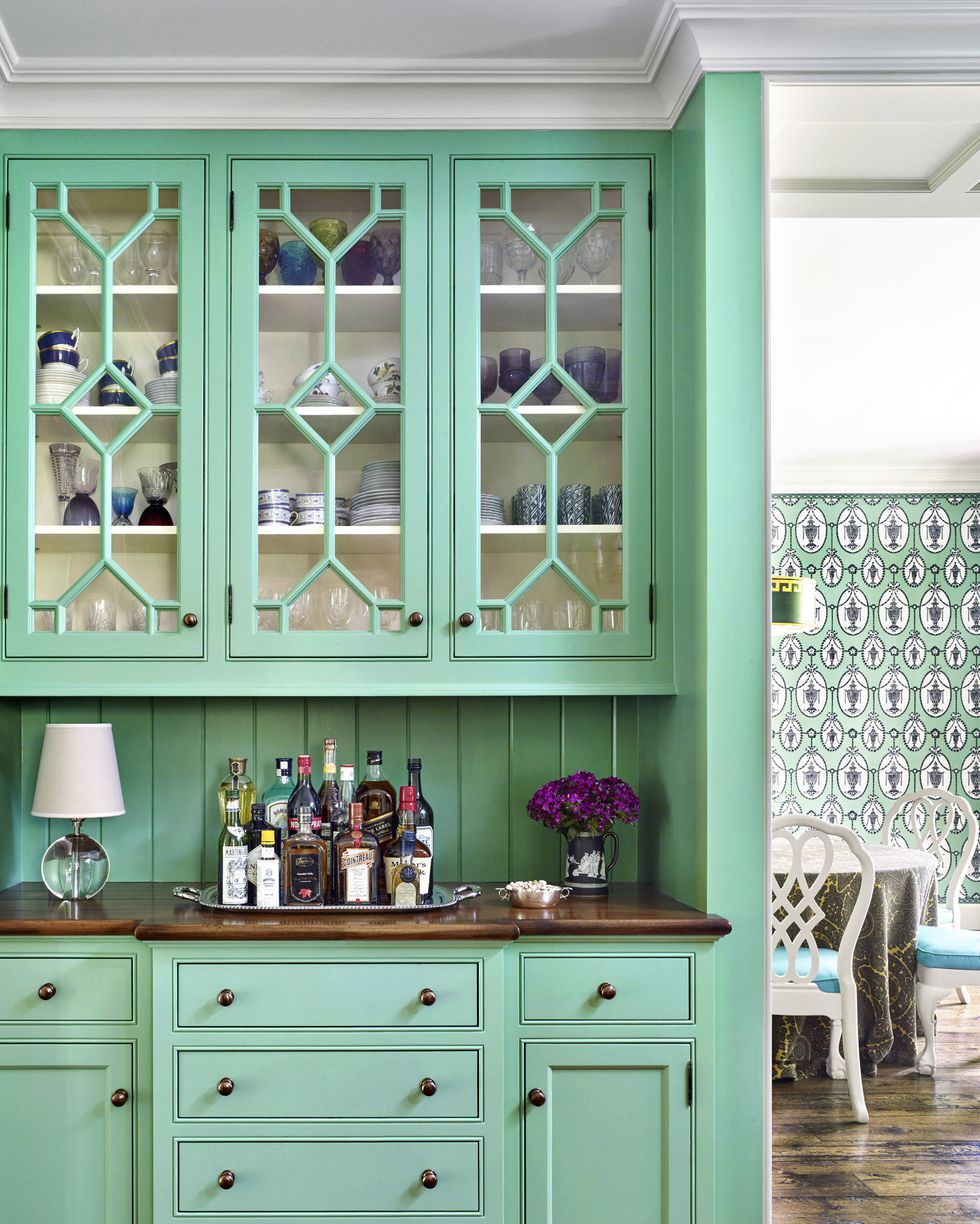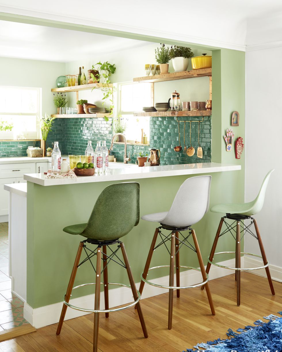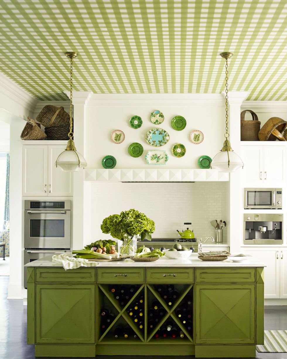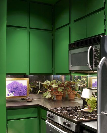 Sử dụng màu xanh lá cây bao trùm căn bếp này, bạn như đang lạc vào một khu rừng ngay trong căn nhà của mình.