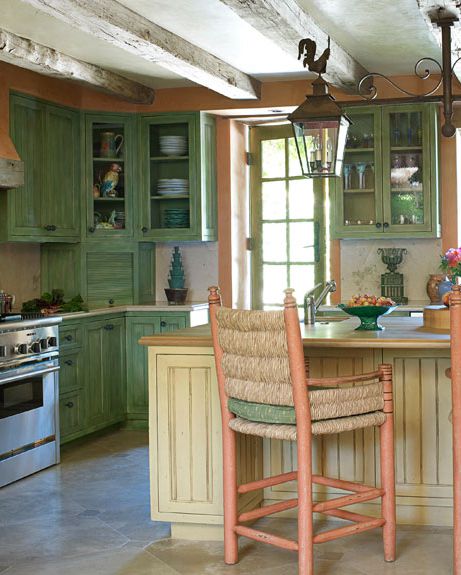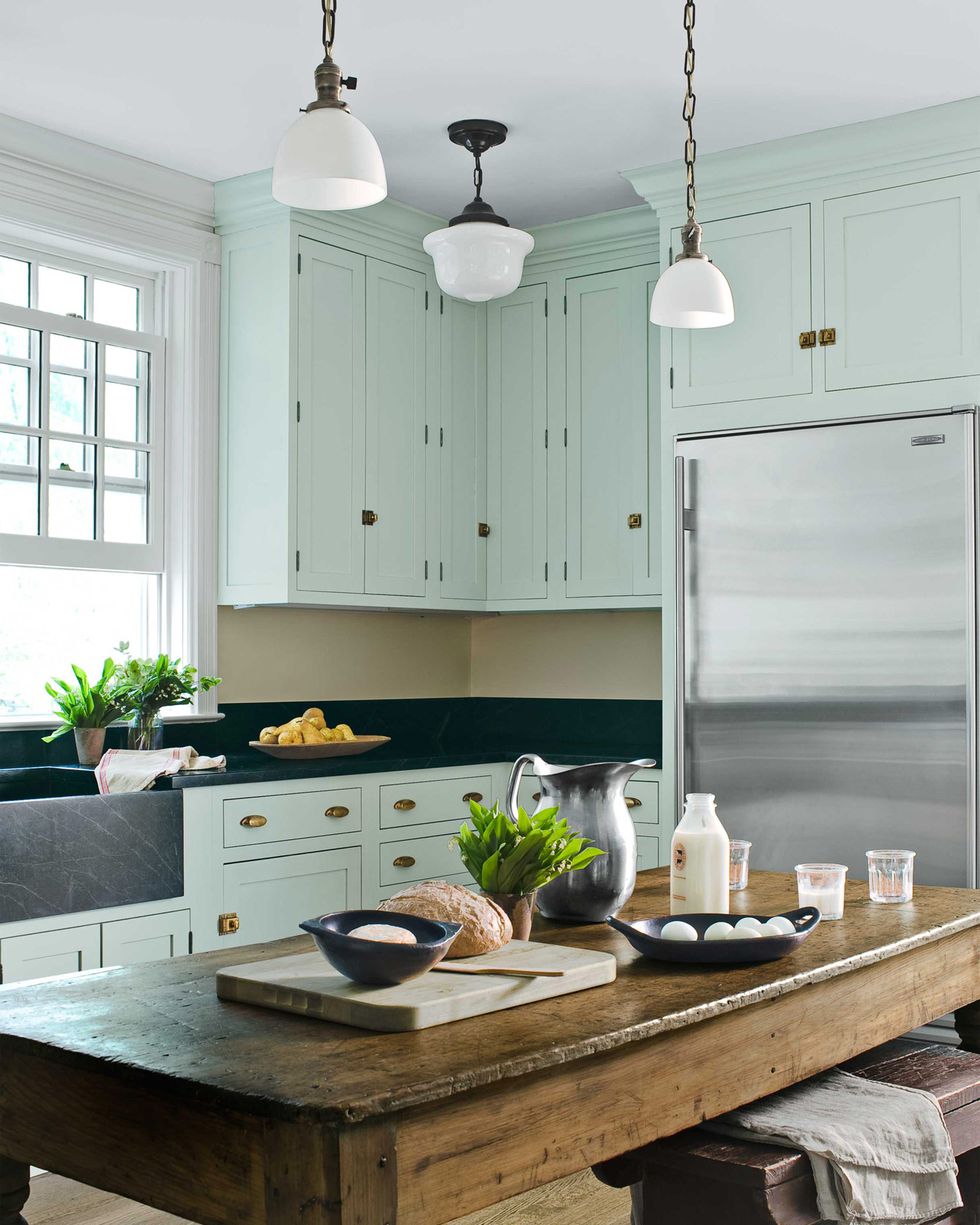 Màu cỏ xanh nhẹ nhàng cho căn bếp vừa hiện đại, vừa cổ điển.