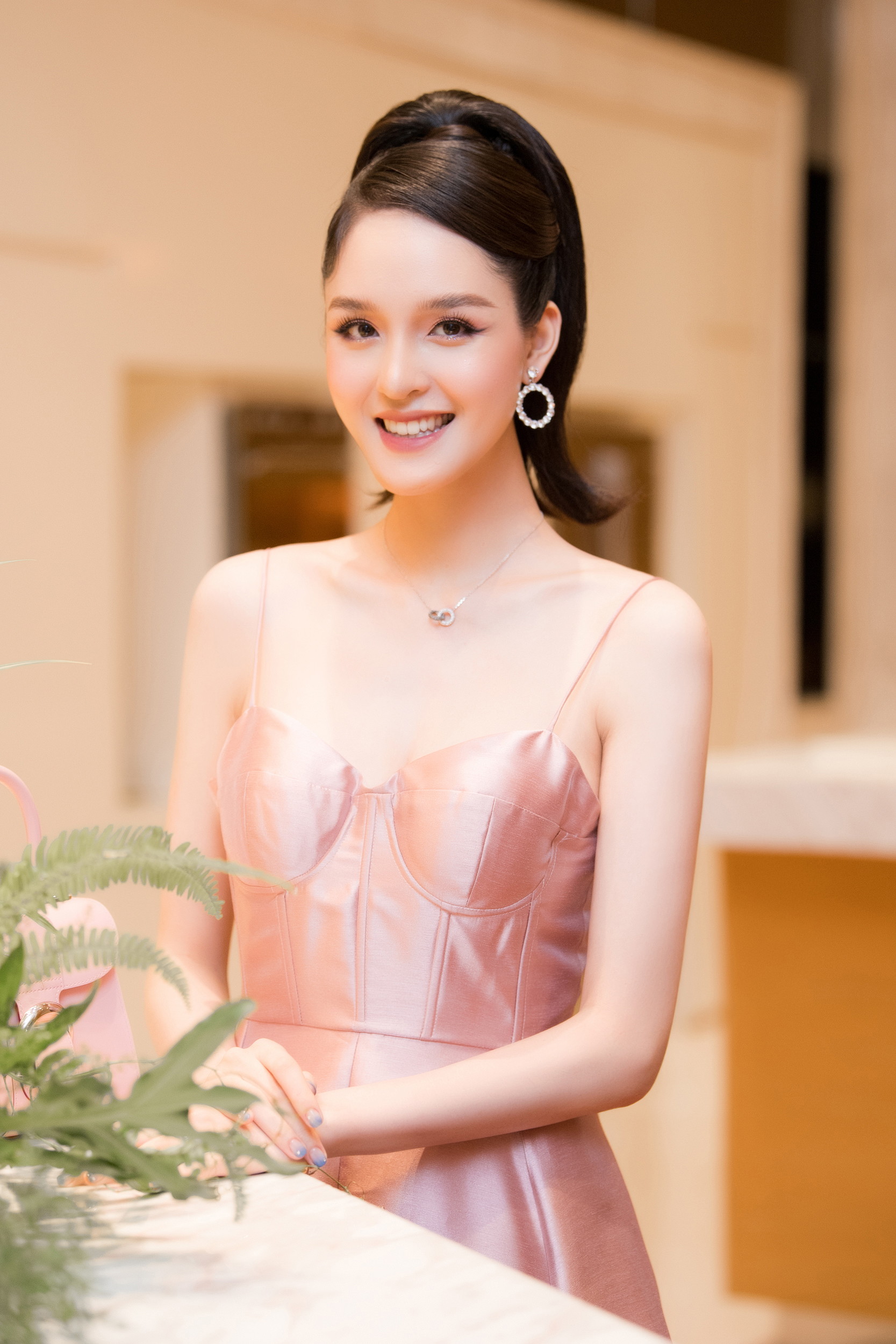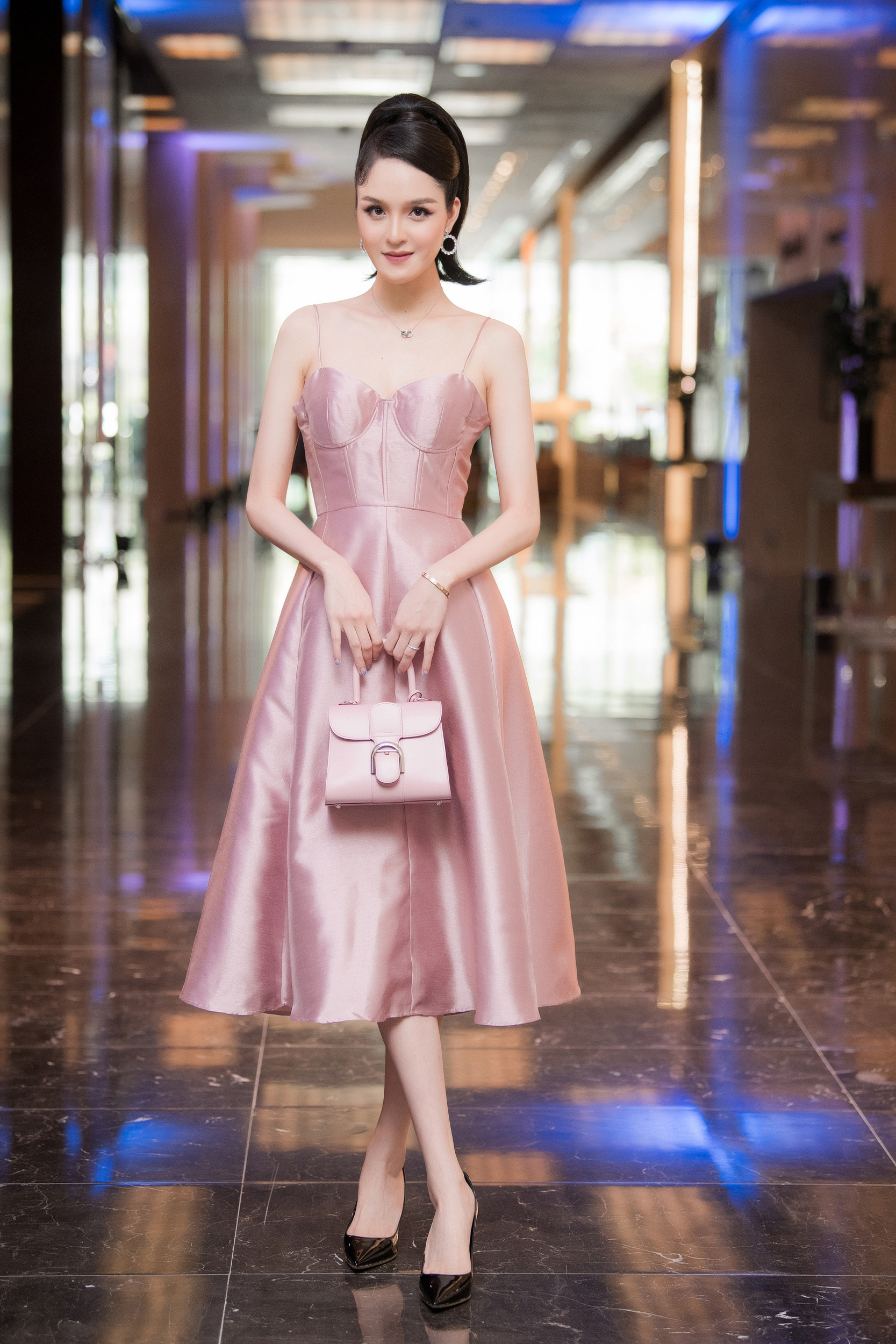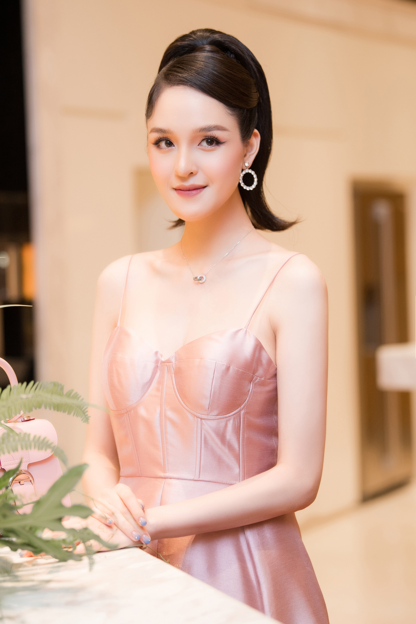 Đi kèm với bộ váy hồng đến từ một thương hiệu trong nước là loạt phụ kiện vô cùng đắt giá