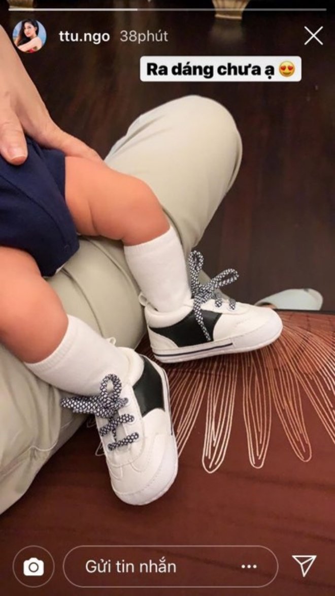 Con trai của Thanh Tú được cho mang giày trắng bảnh bao lộ rõ sự bụ bẫm