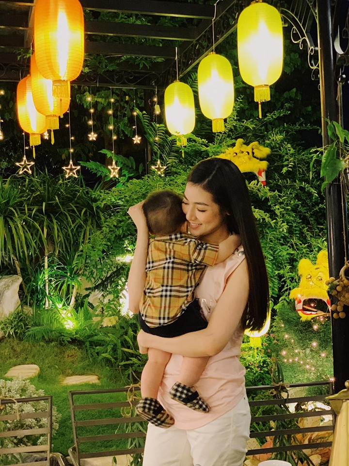 Trên trang facebook của mình thì Tú Anh đăng tải hình chụp cùng con trai kèm chú thích chia sẻ đây là mùa trung thu đầu tiên của Bé Kem